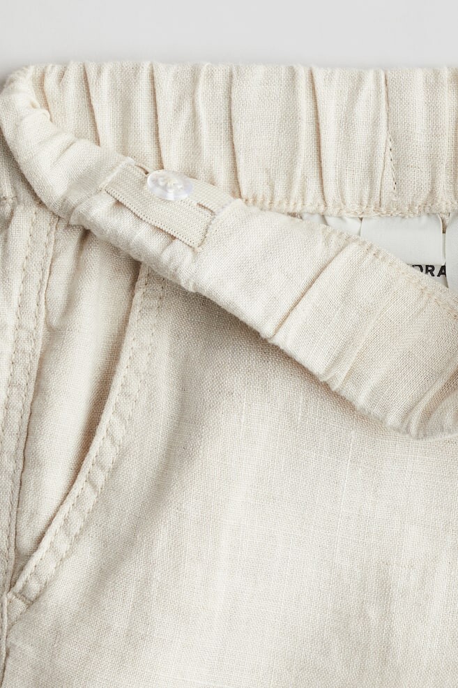 H&M Adorables. Брюки из мягкого, воздушного льна, идеально подходят для теплых летних дней. Пояс с регулируемой резинкой и шнурком, наклонные боковые карманы и открытый задний карман. Лен — это очень практичная ткань с легкой текстурой, которая быстро сохнет и со временем становится мягче. H&M Adorables — это тщательно отобранная коллекция классических и удобных вещей высокого качества.