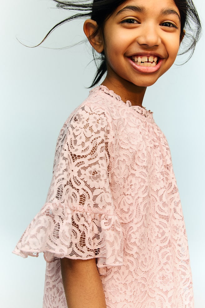 Кружевное платье с воланами H&M, розовый 5 386₽