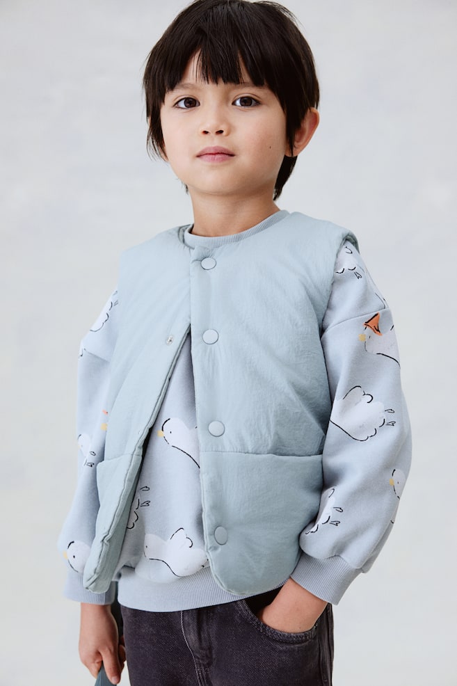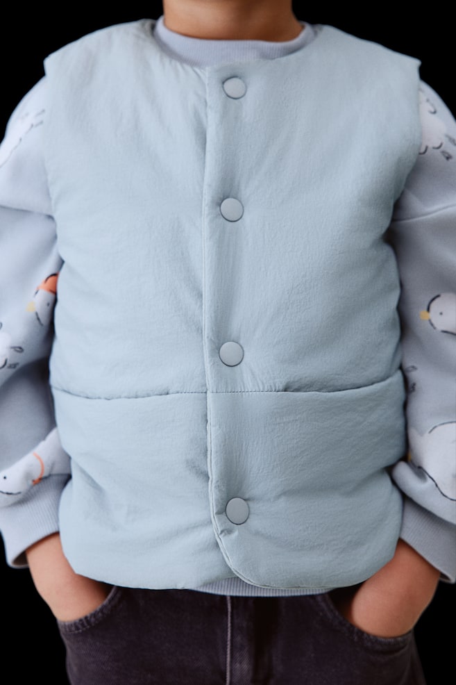 H&M Adorables. Слегка утепленный двусторонний жилет, одна сторона которого изготовлена из мягкого высококачественного хлопкового вельвета, а другая — из нейлона. Круглый вырез, застежка на кнопки и незаметные передние карманы. H&M Adorables — это тщательно отобранная коллекция классических и удобных вещей высокого качества.