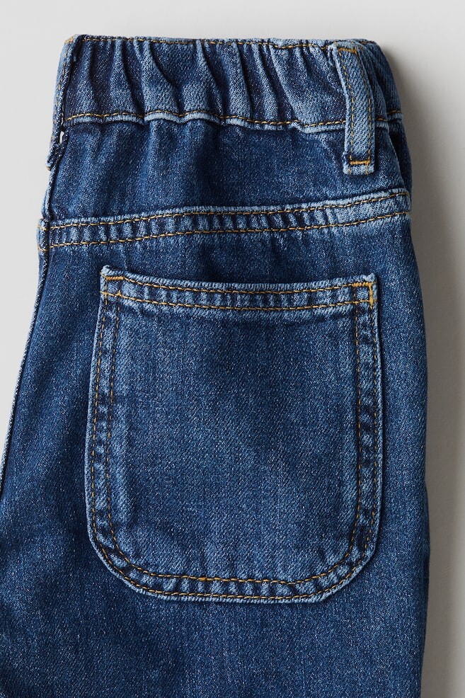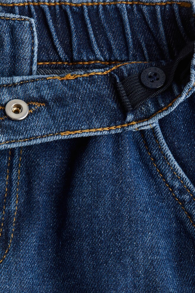 Джинсы с пятью карманами из мягкого хлопкового денима. Свободный крой в области бедер и ягодиц. Коническая ножка. Регулируемый эластичный пояс с застежкой-молнией и кнопками.