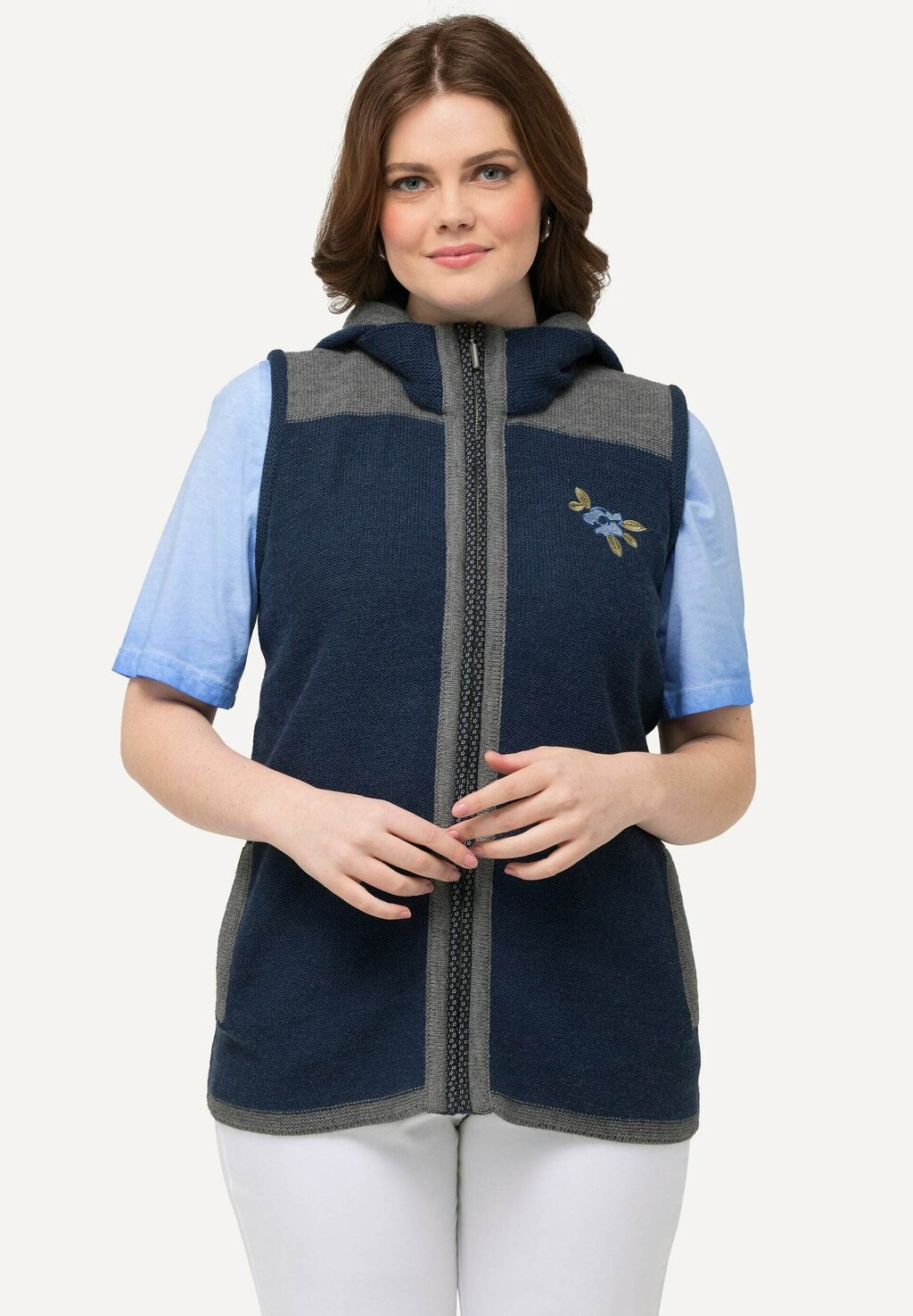 Жилет FLORAL EMBROIDERED Ulla Popken, синий