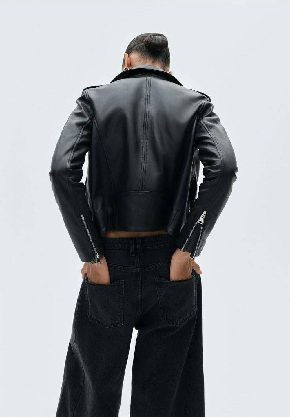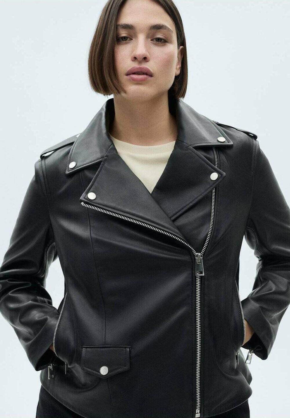 Кожаная куртка PERFECT Mango, черный