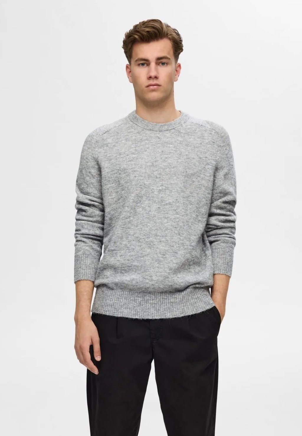 Джемпер CUELLO REDONDO Selected Homme, светло-серый