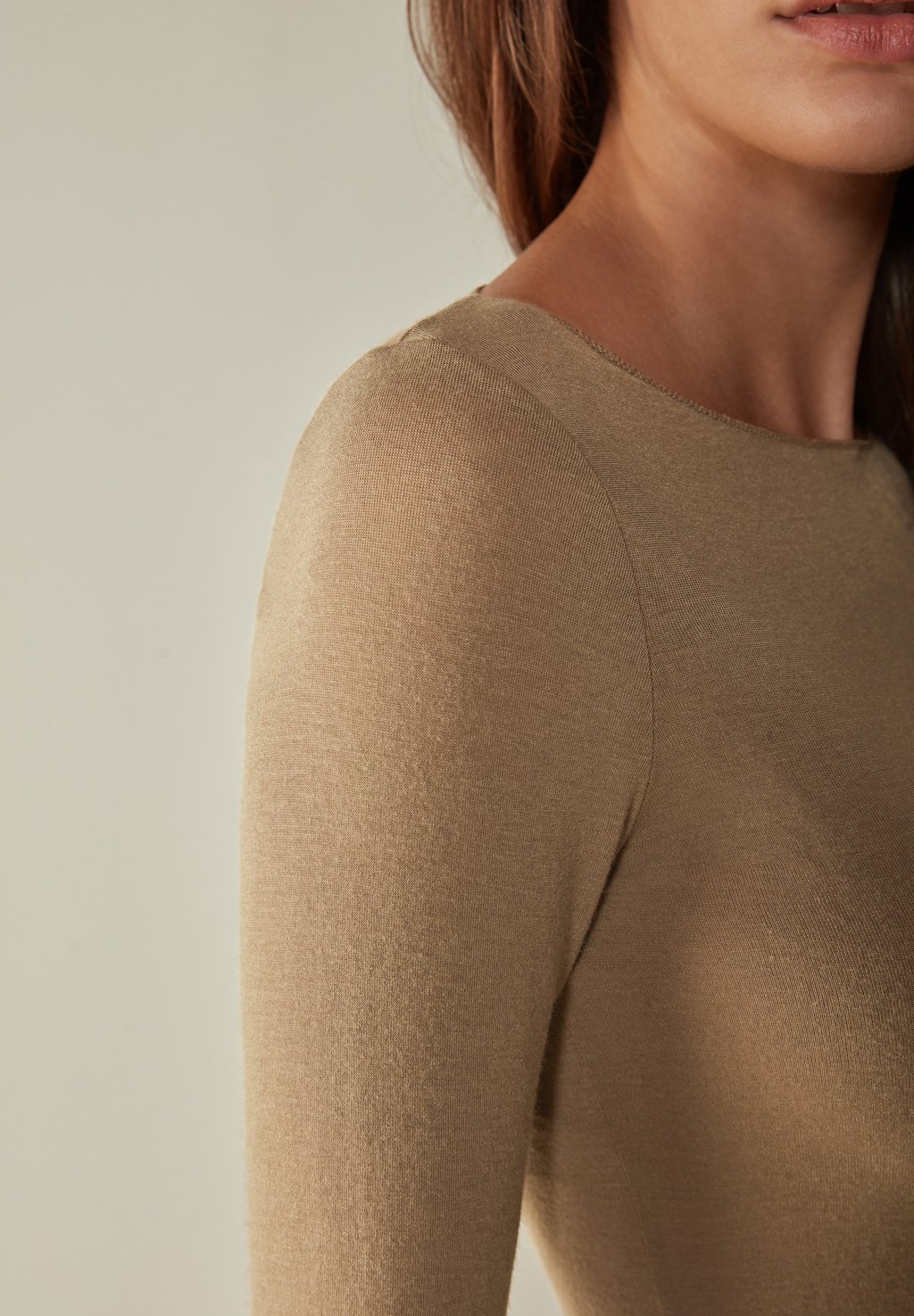 Материал внешней ткани: 85% модал, 9% кашемир, 6% эластан.