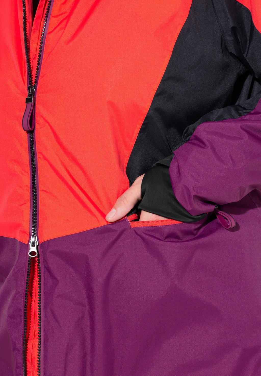 Детали: Двусторонняя молния, застежка на подкладкеКачества: водонепроницаемый, дышащий, ветрозащитный.