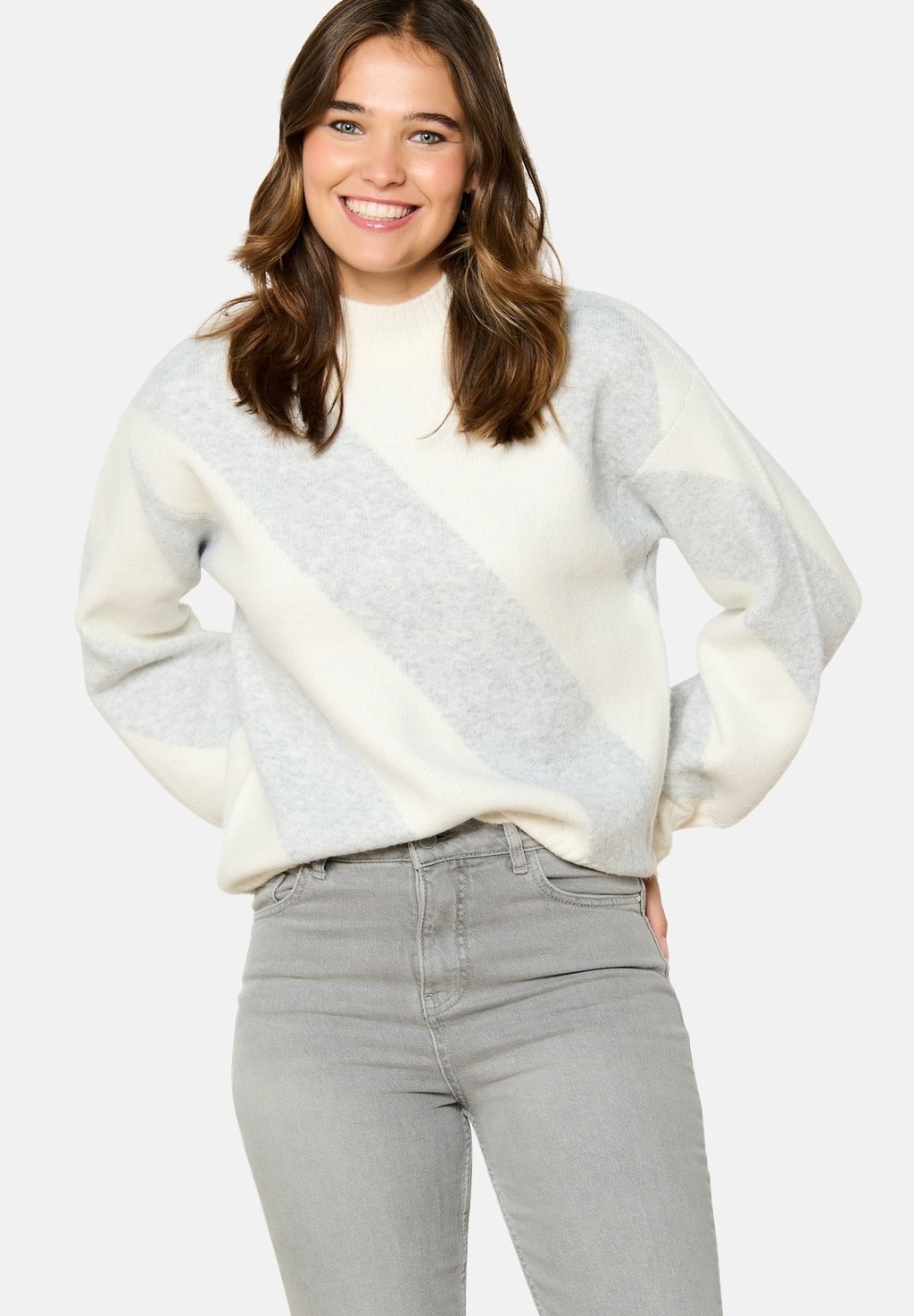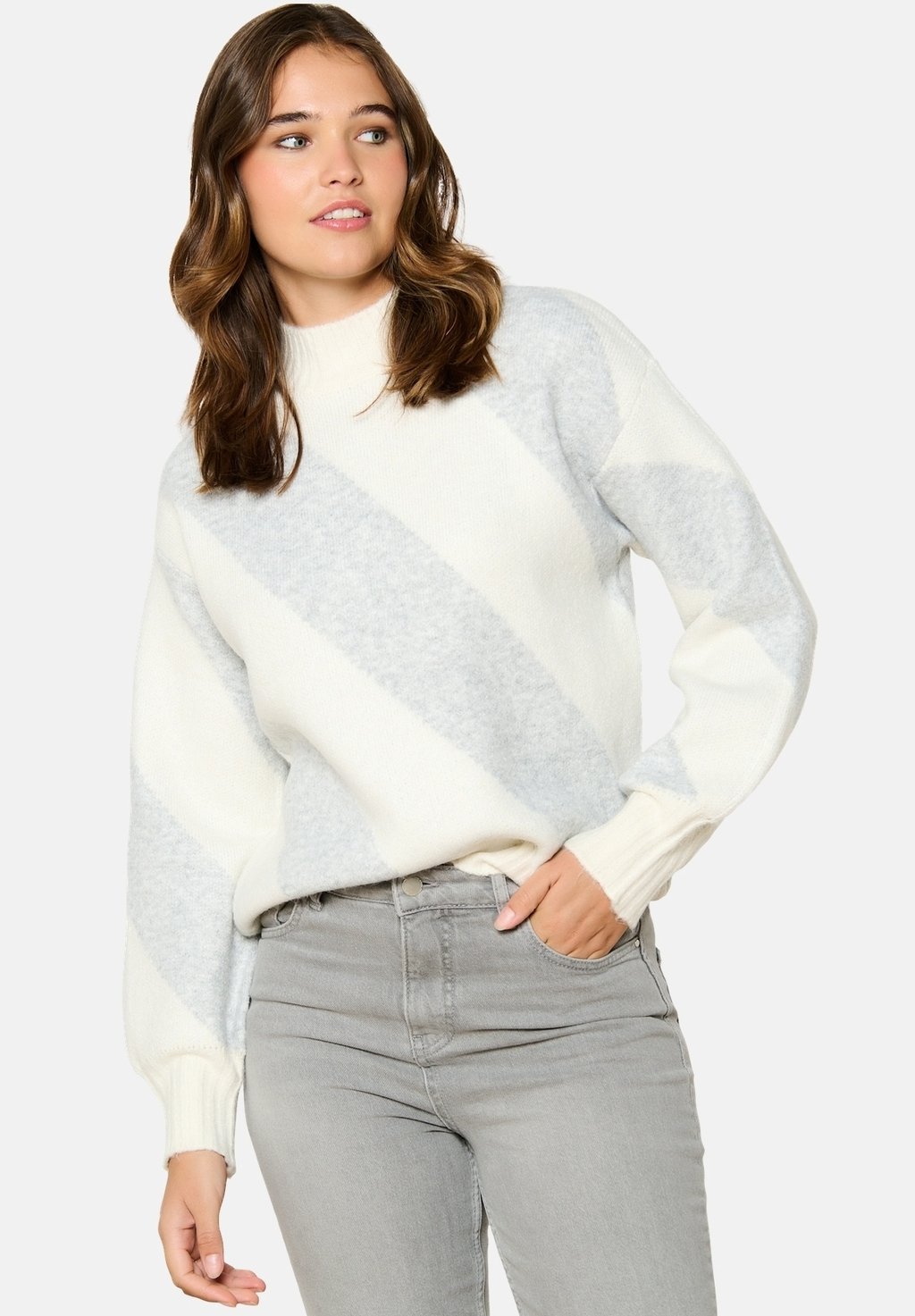 Джемпер JACQUARD WITH STRIPES LolaLiza, светло-серый