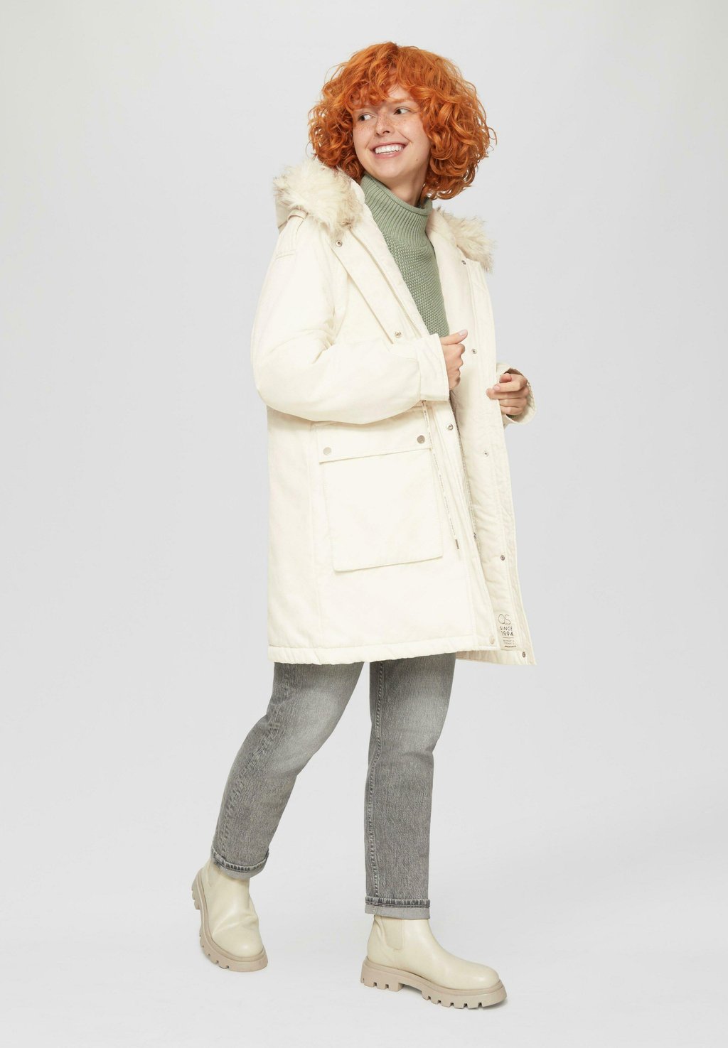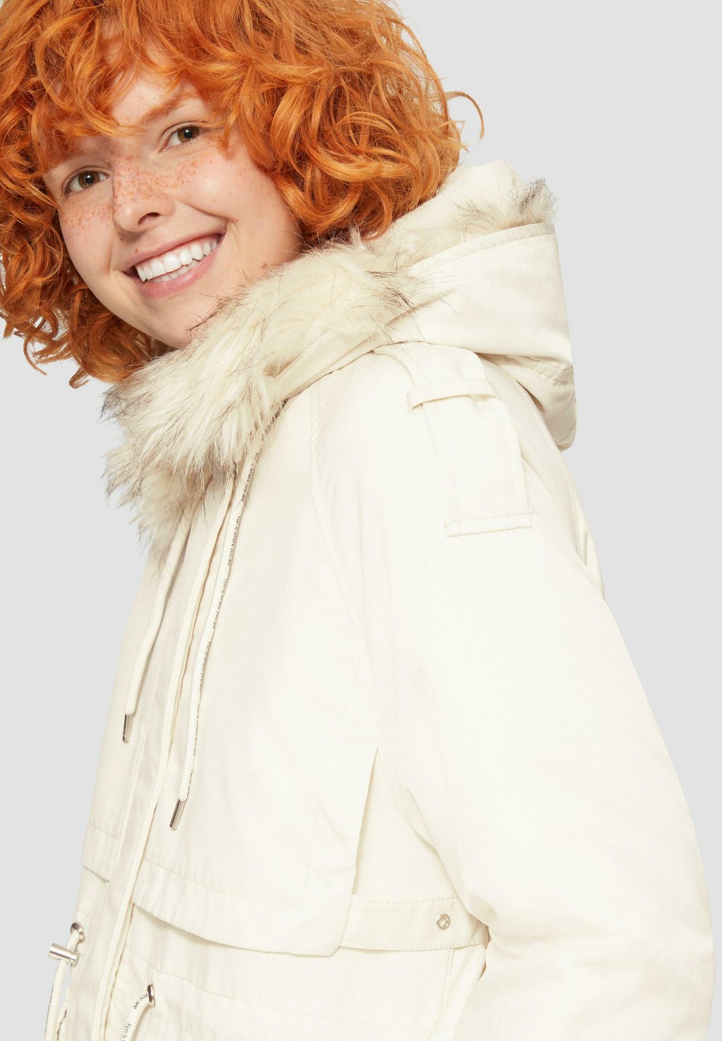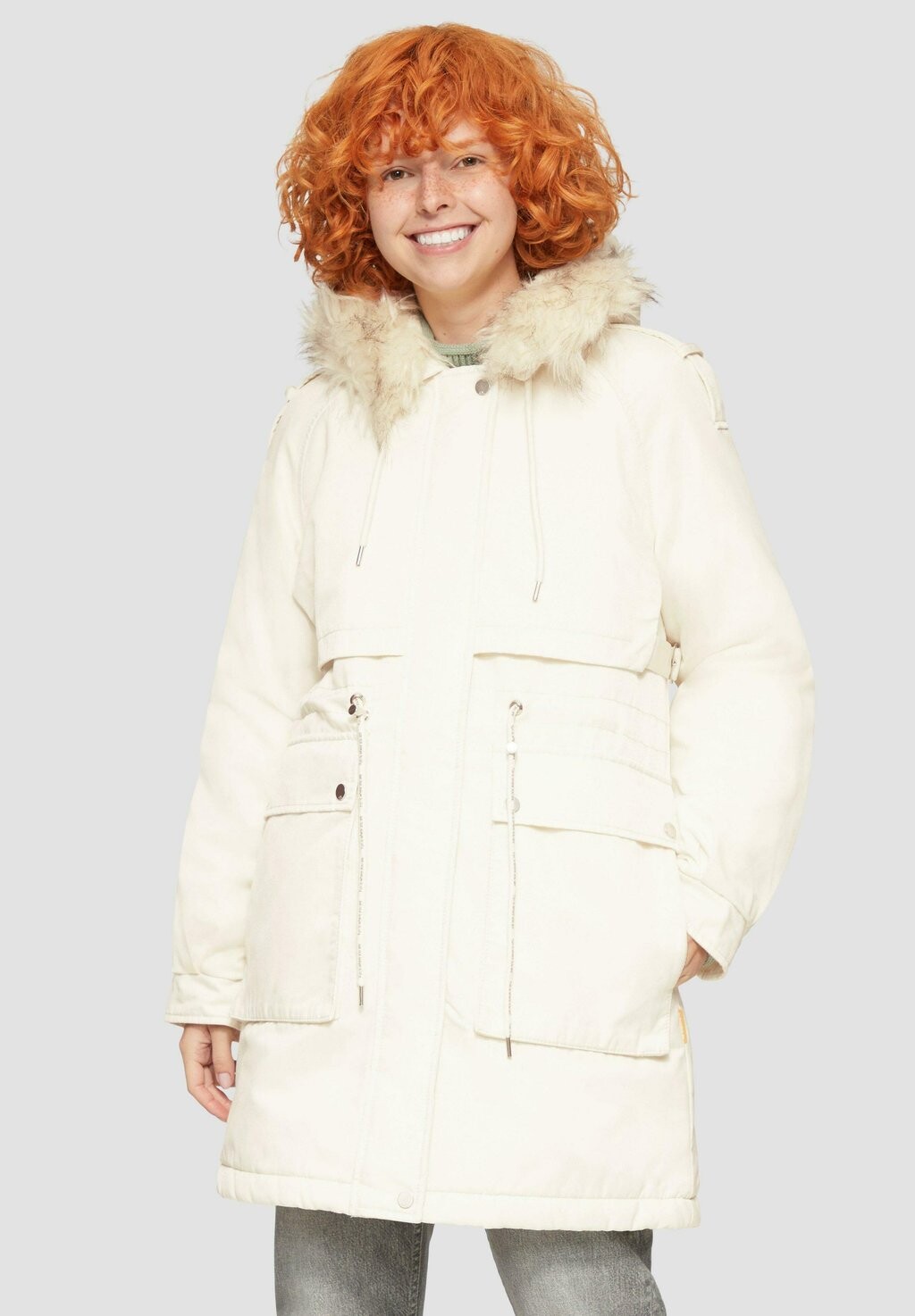 Зимнее пальто MIT ABNEHMBAREM KUNSTFELL QS, молочный