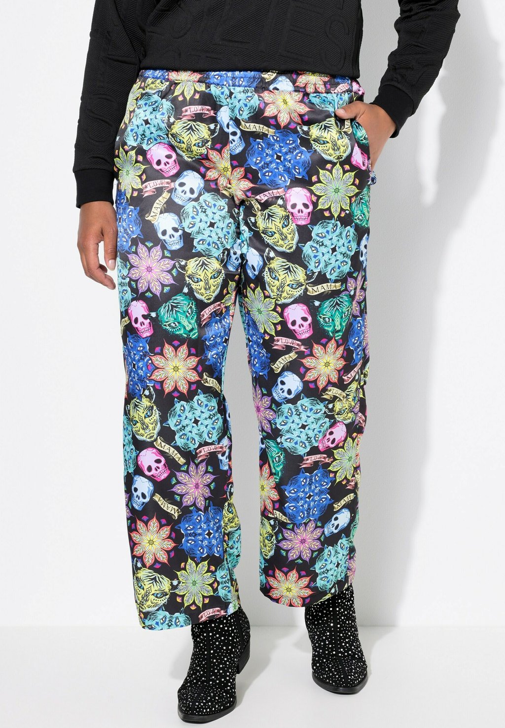 Брюки GERADES BEIN, TOTENKOPF-MUSTER, ELASTIKBUND Angel of Style, черный 6 502₽