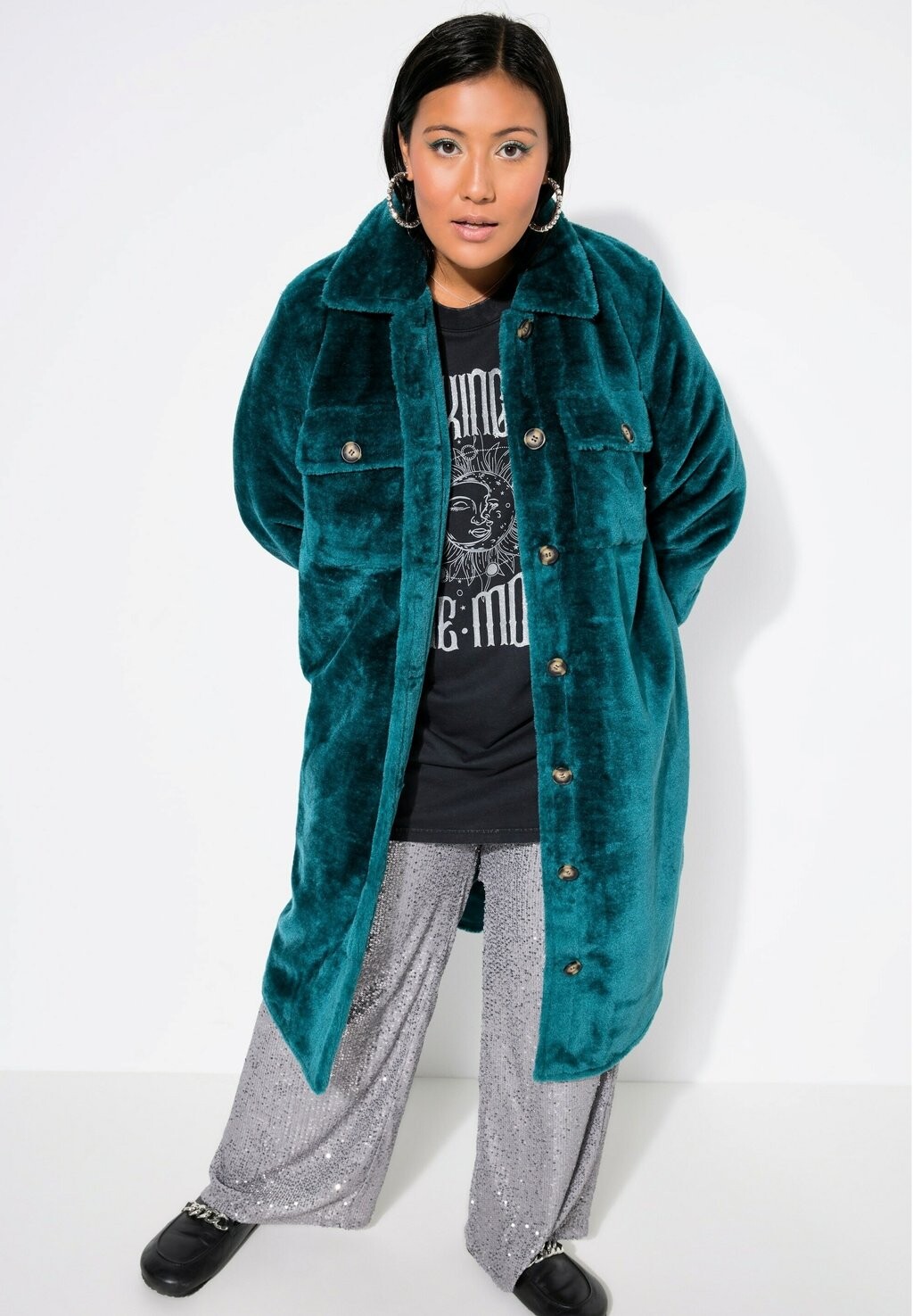 Зимнее пальто WIDE SHAPE LANGARM Studio Untold, бирюзовый