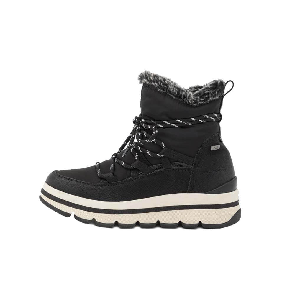 Утепленные зимние полусапоги от Tom Tailor на шнуровке и молнии. Отделаны искусственным мехом.