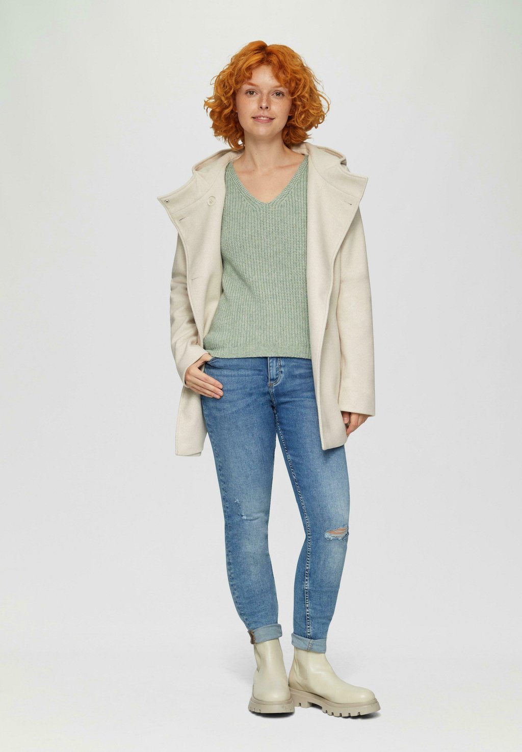 Джемпер MIT ÜBERSCHNITTENEN SCHULTERN IN MELANGE OPTIK QS, зеленый