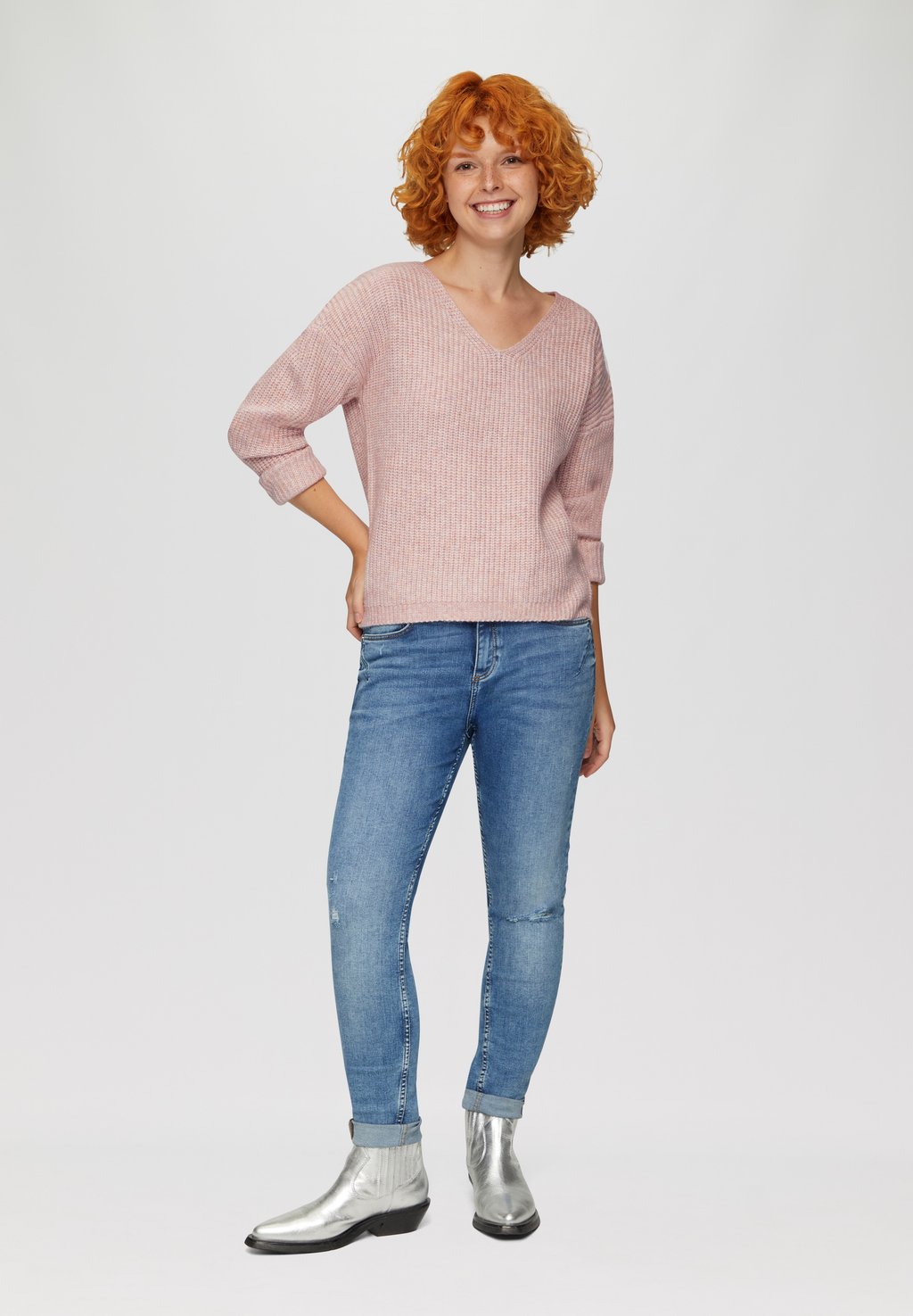 Джемпер MIT ÜBERSCHNITTENEN SCHULTERN IN MELANGE OPTIK QS, розовый