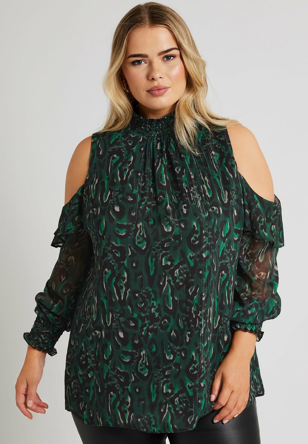 Блуза ANIMAL COLD SHOULDER Yours Clothing, темно-зеленый