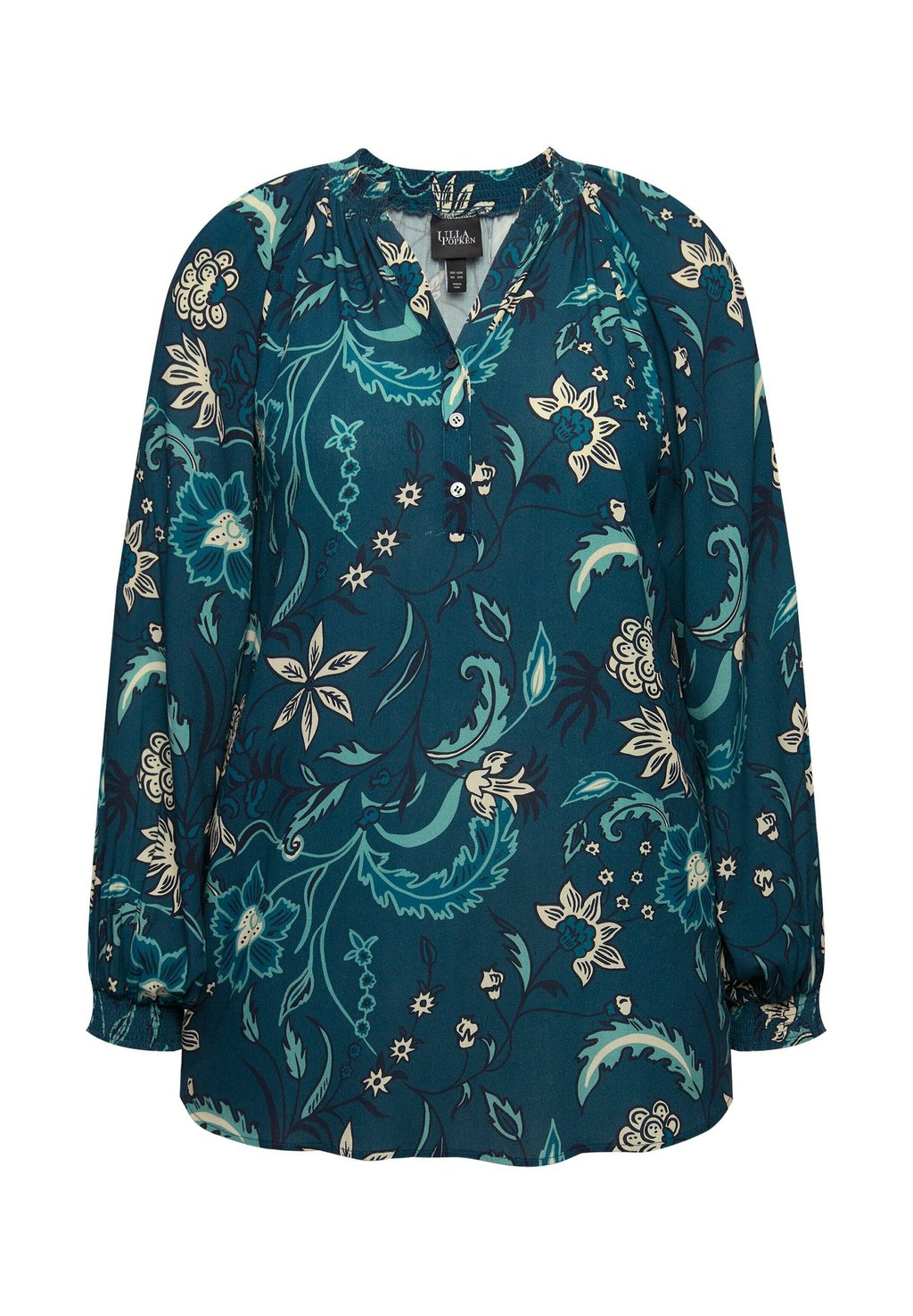 Блуза FLORAL SMOCKED LONG SLEEVE Ulla Popken, бирюзовый