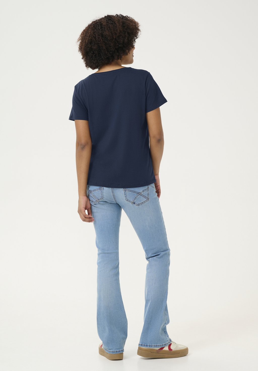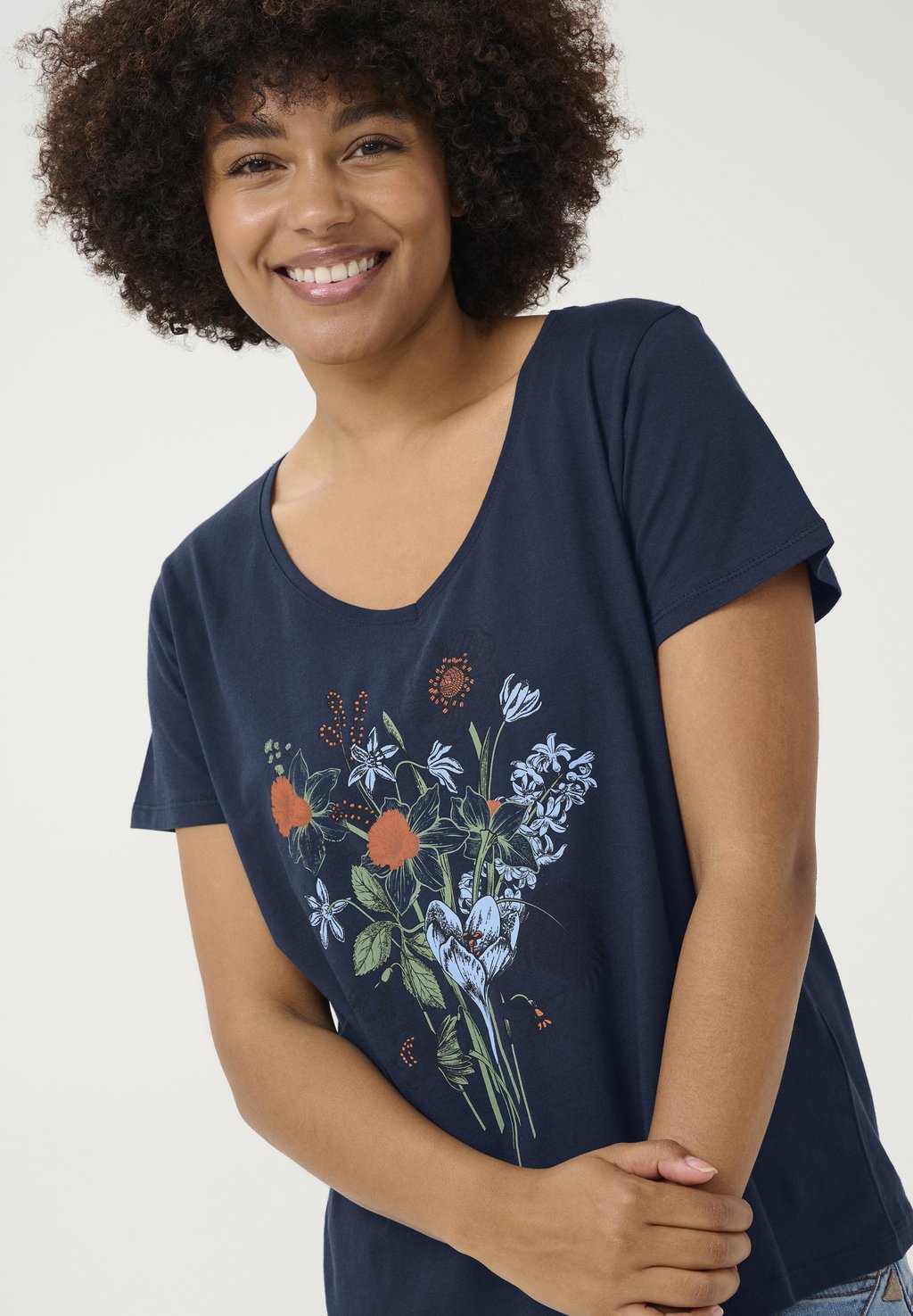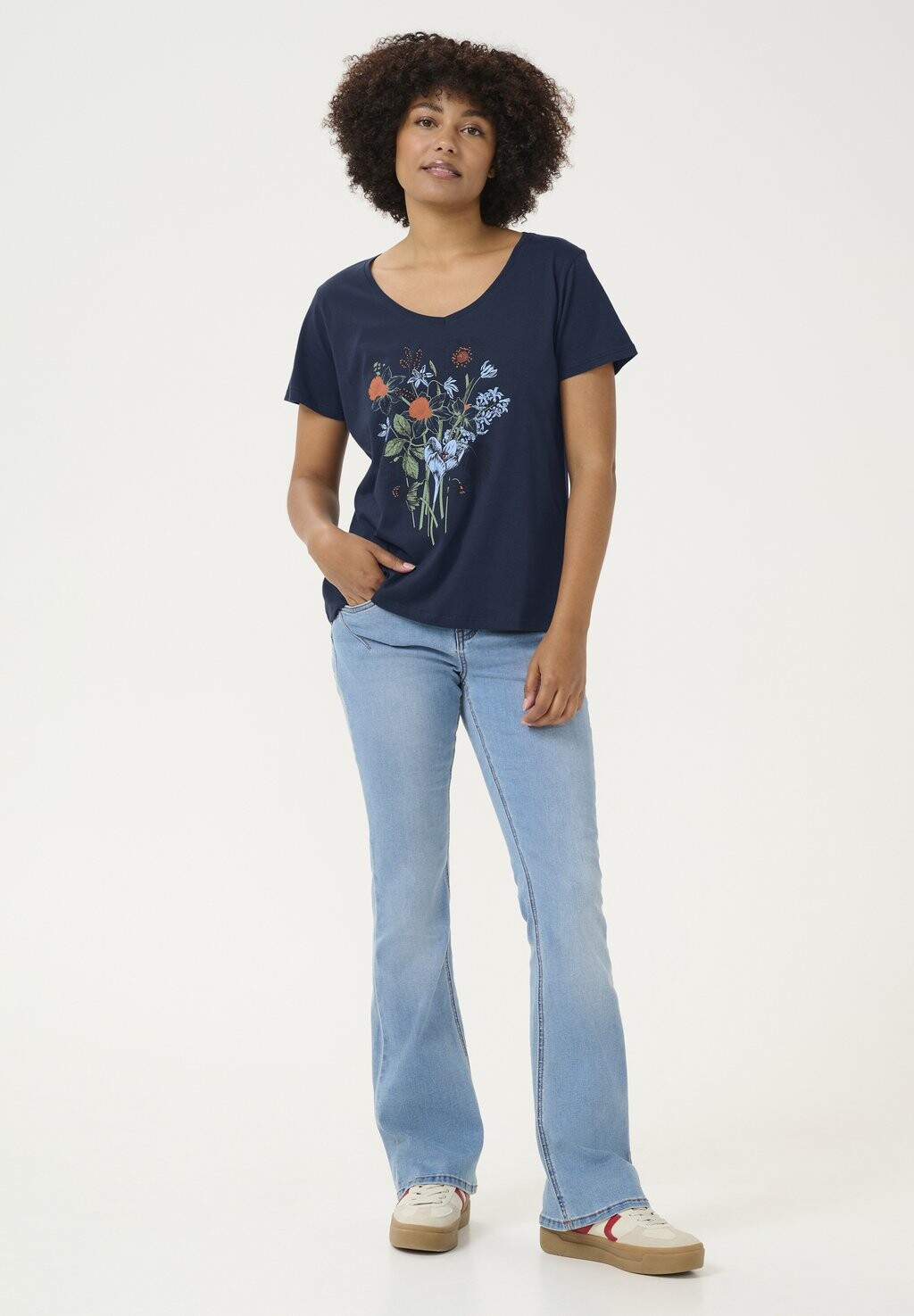 Футболка с принтом ELVIRE V-NECK Cream, темно-синий