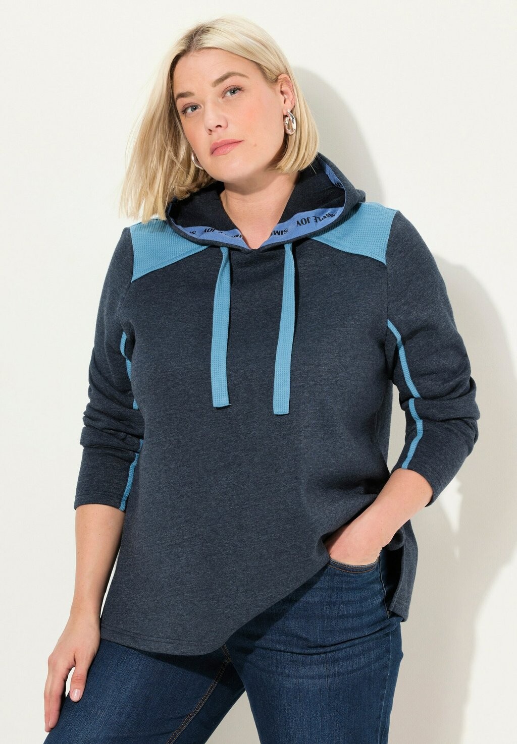 Толстовка с капюшоном WAFFLE CONTRAST COLOR Ulla Popken, темно-синий