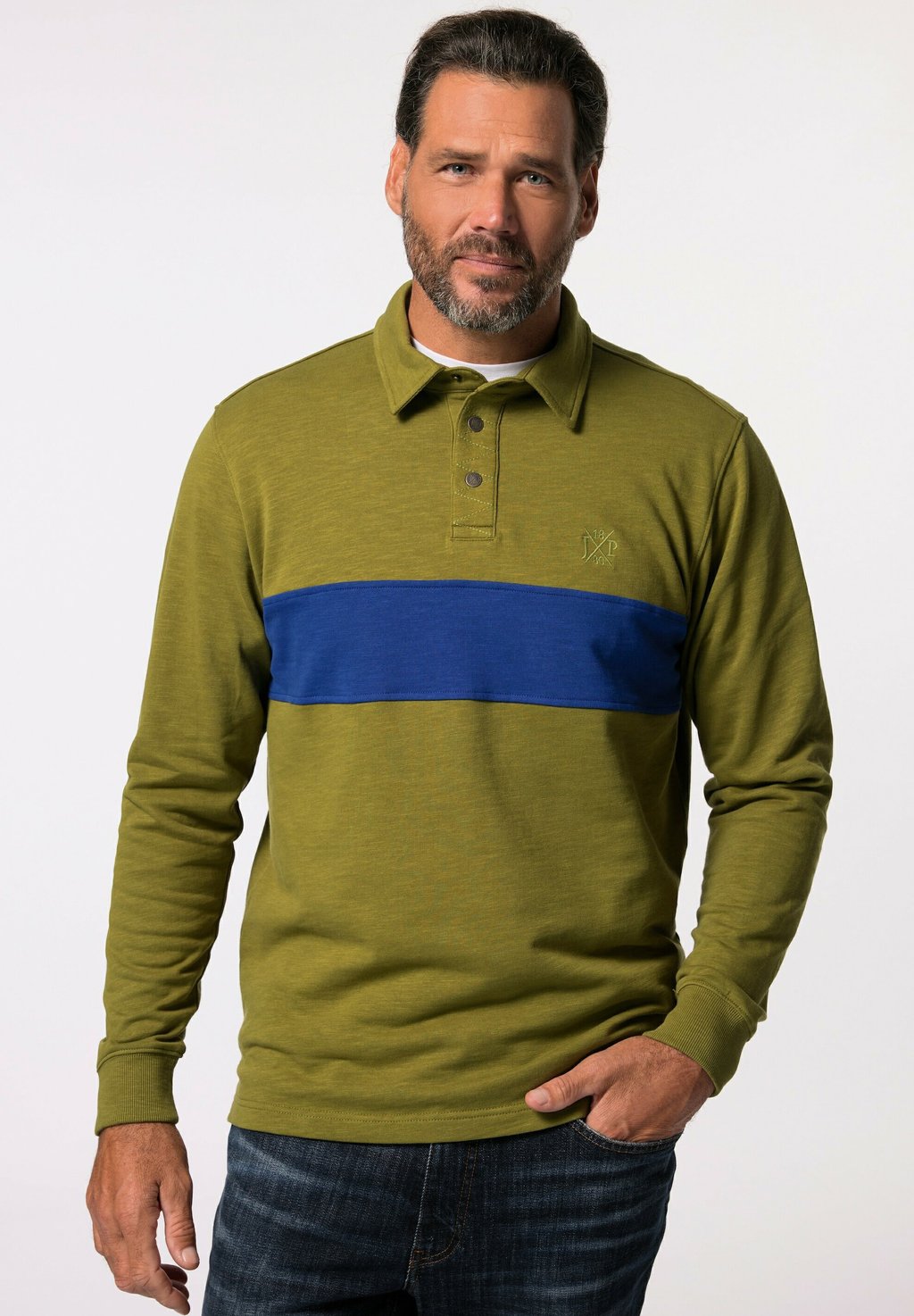 Рубашка поло CHEST STRIPES COLLAR WITH PRESS STUDS JP1880, темно-зеленый