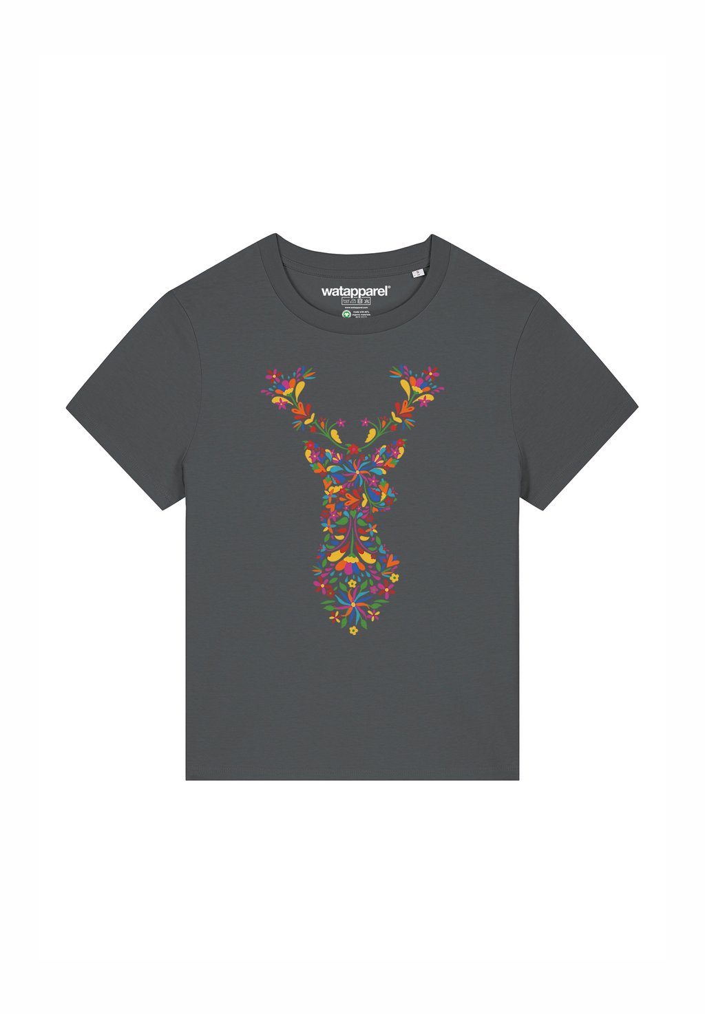 Футболка с принтом FLORAL DEER watapparel, антрацит