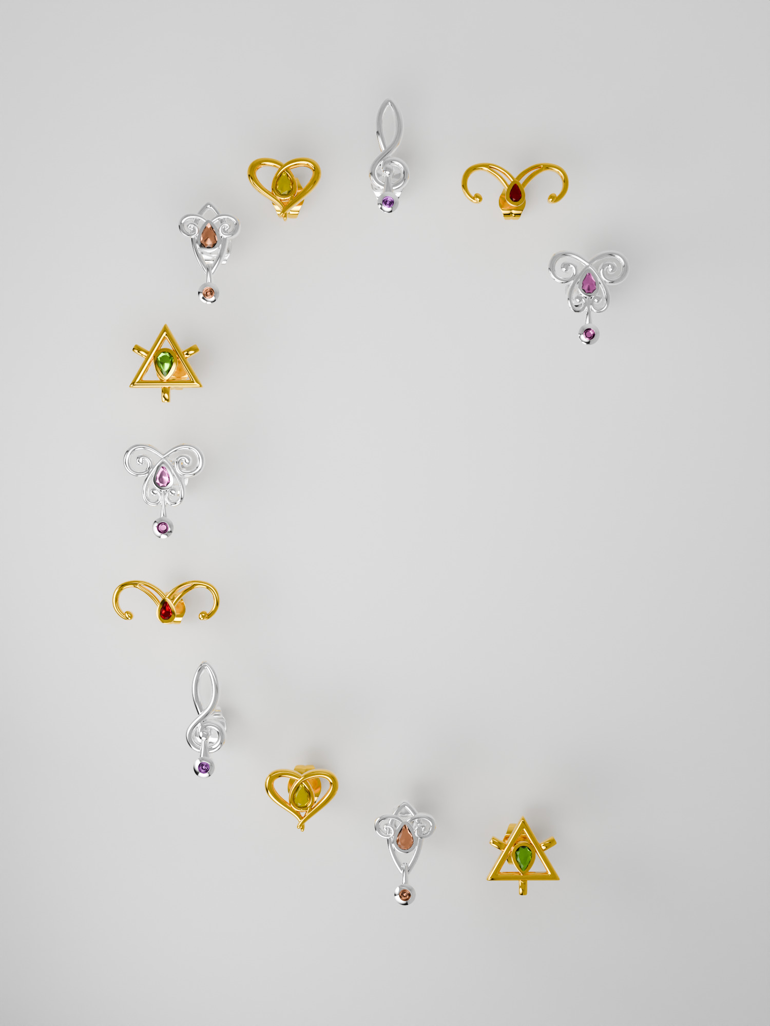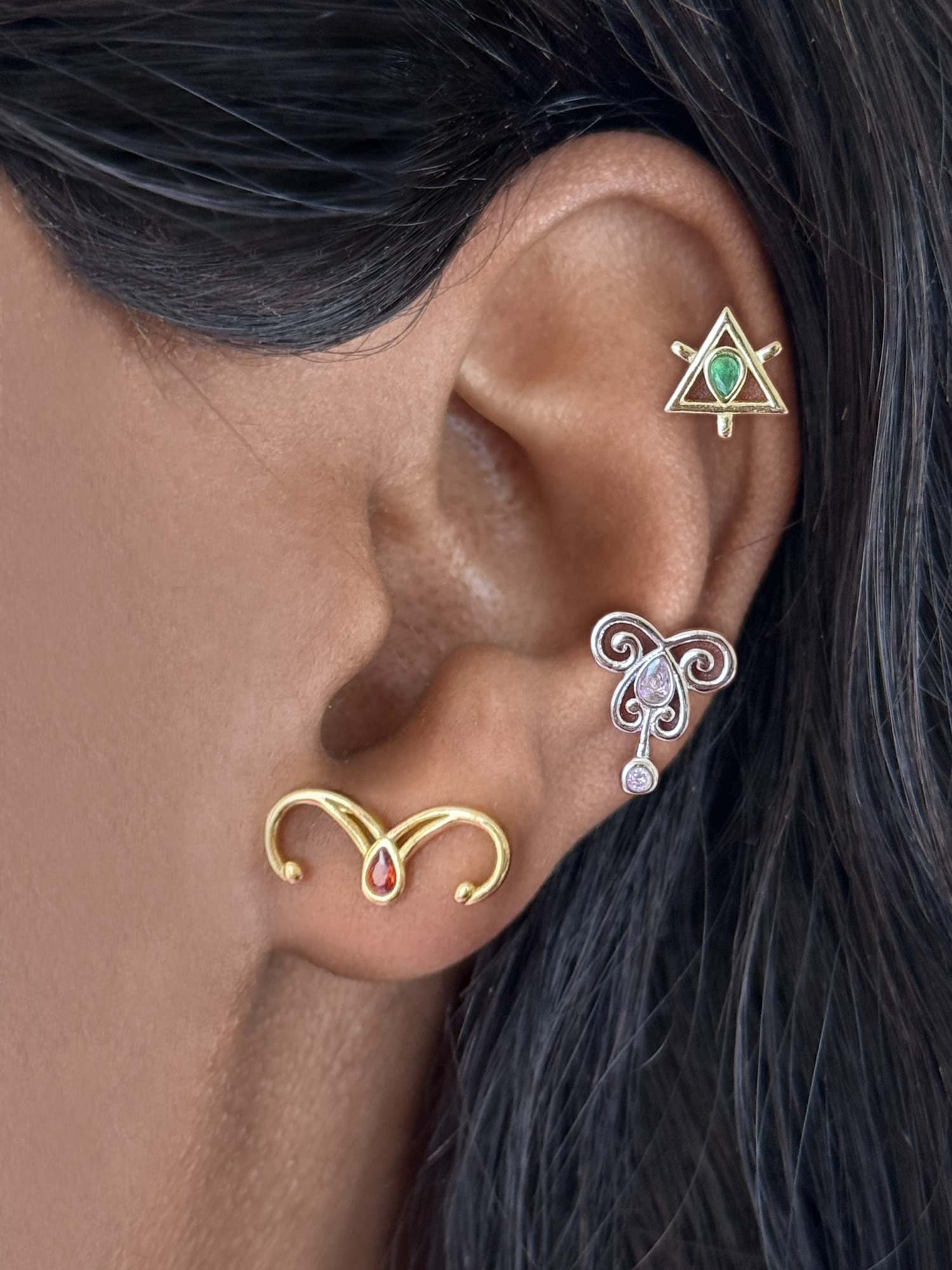 Каждый комплект сережек изготовлен из цельного стерлингового серебра 925 пробы и украшен яркими и цветными камнями.