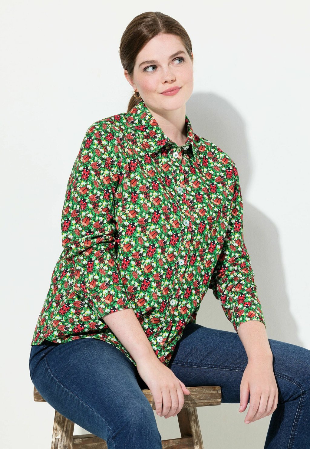 Блузка на пуговицах FLORAL LONG SLEEVE Ulla Popken, оливковый
