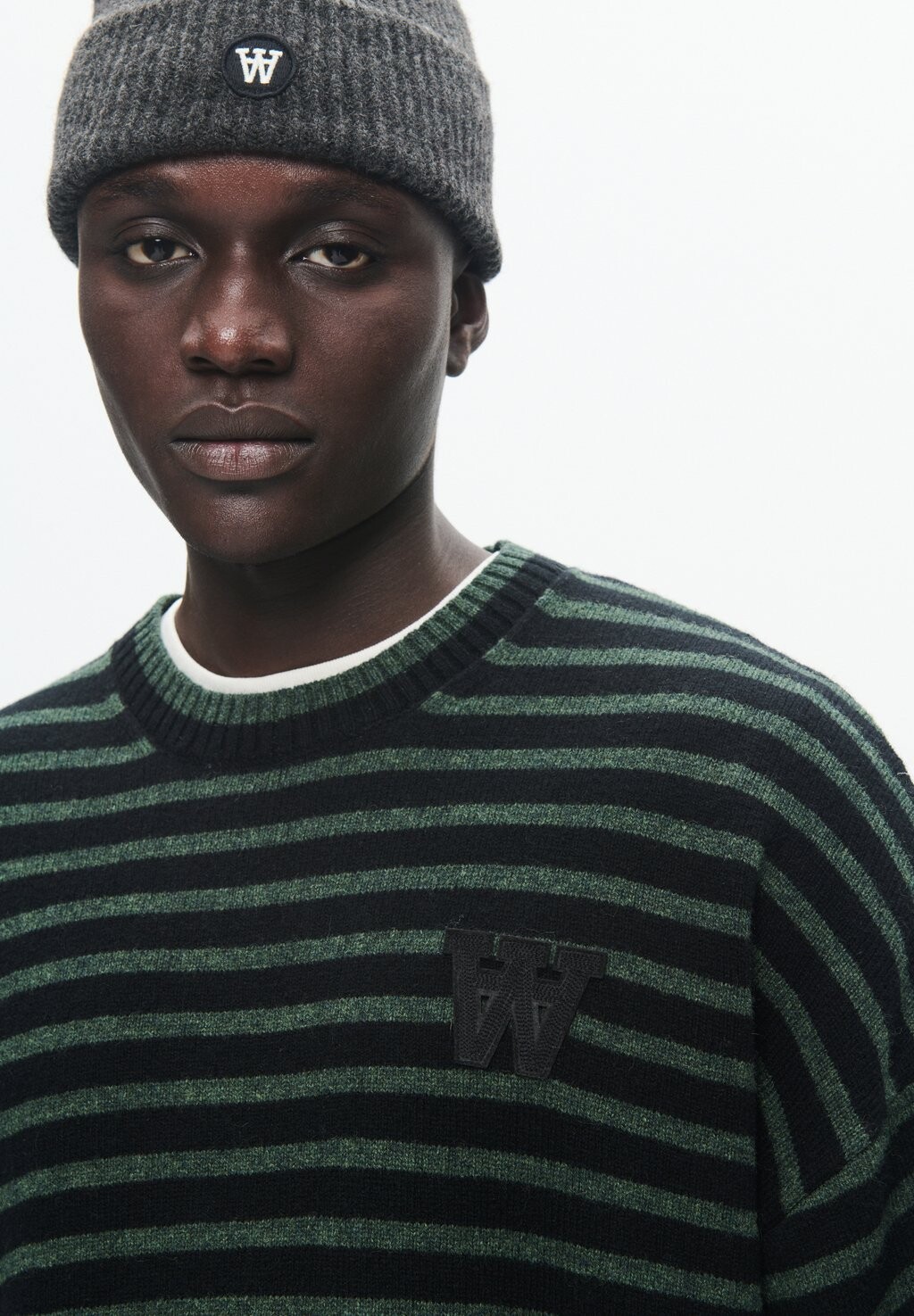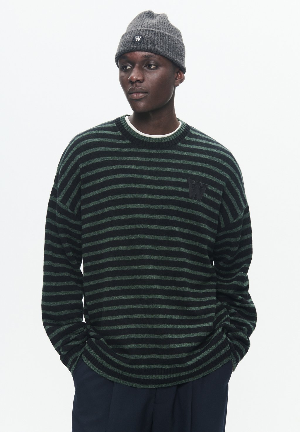 Джемпер TYA LOGO STRIPED BOXY KNIT PULLOVER Double A by Wood Wood, темно-зеленый
