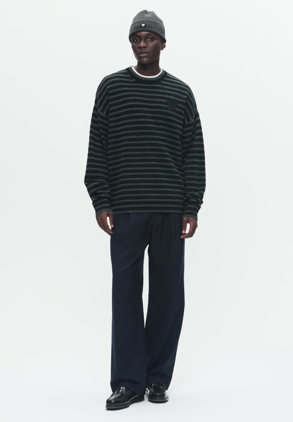 Джемпер TYA LOGO STRIPED BOXY KNIT PULLOVER Double A by Wood Wood, темно-зеленый 14 326₽