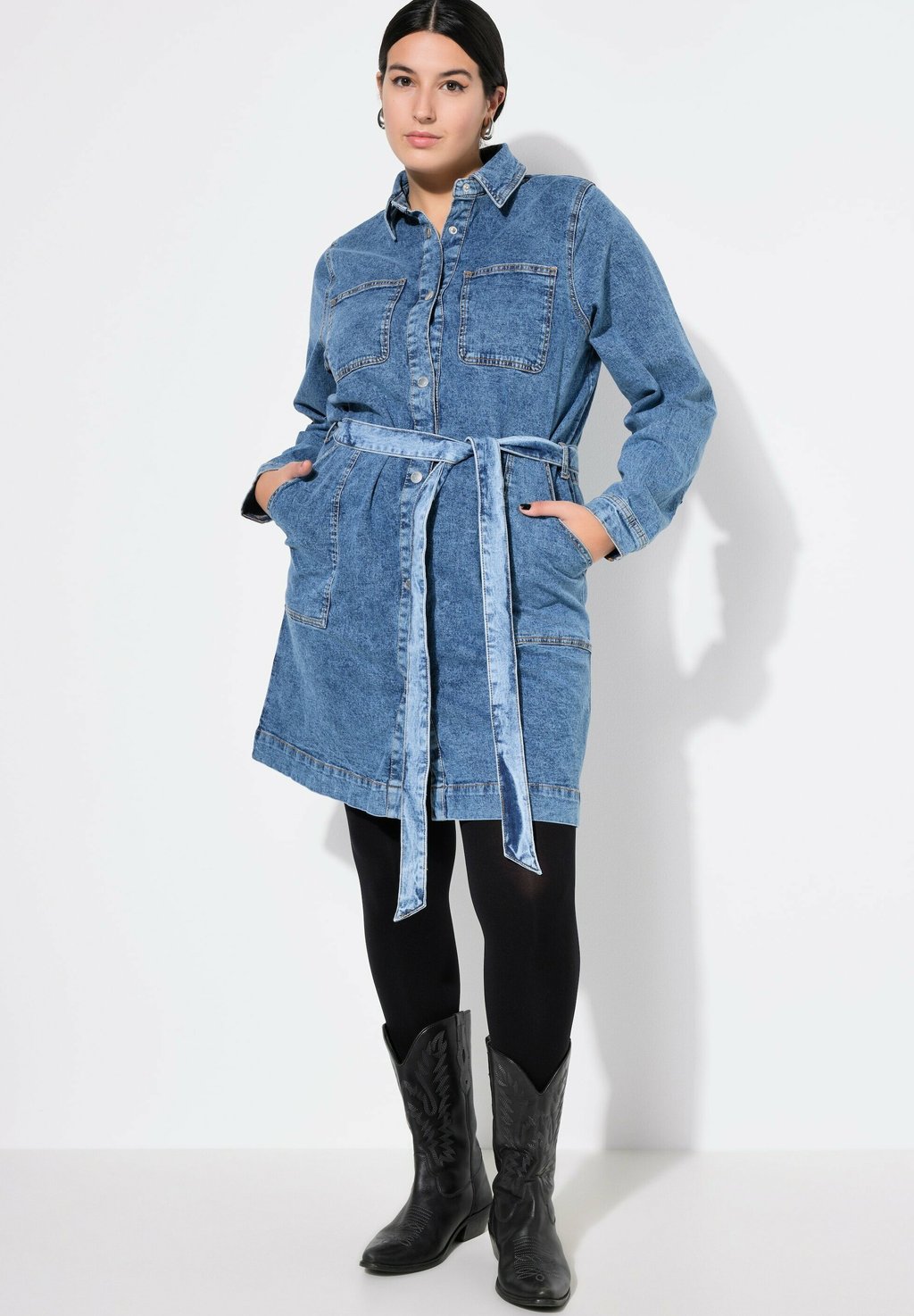 Платье из денима TIE BELT Studio Untold, светло-голубой