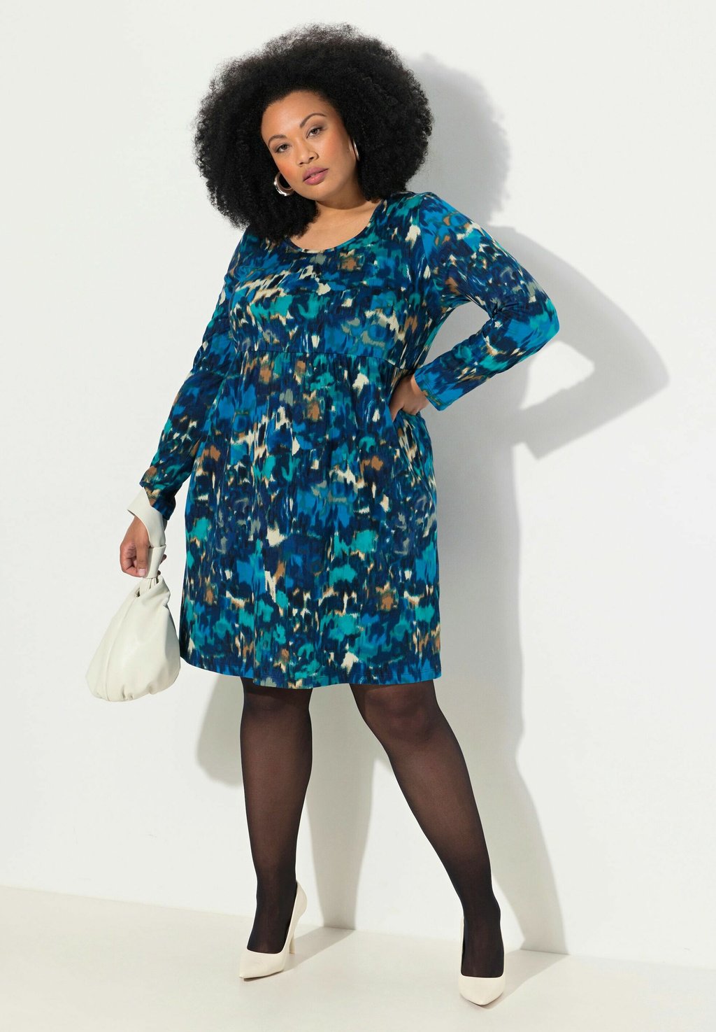 Платье из джерси ABSTRACT PRINT EMPIRE WAIST Ulla Popken, темно-синий