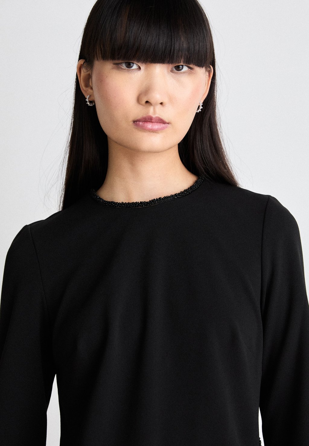 Платье из джерси JEWEL NECK BEADS TRIM DKNY, черный 10 377₽