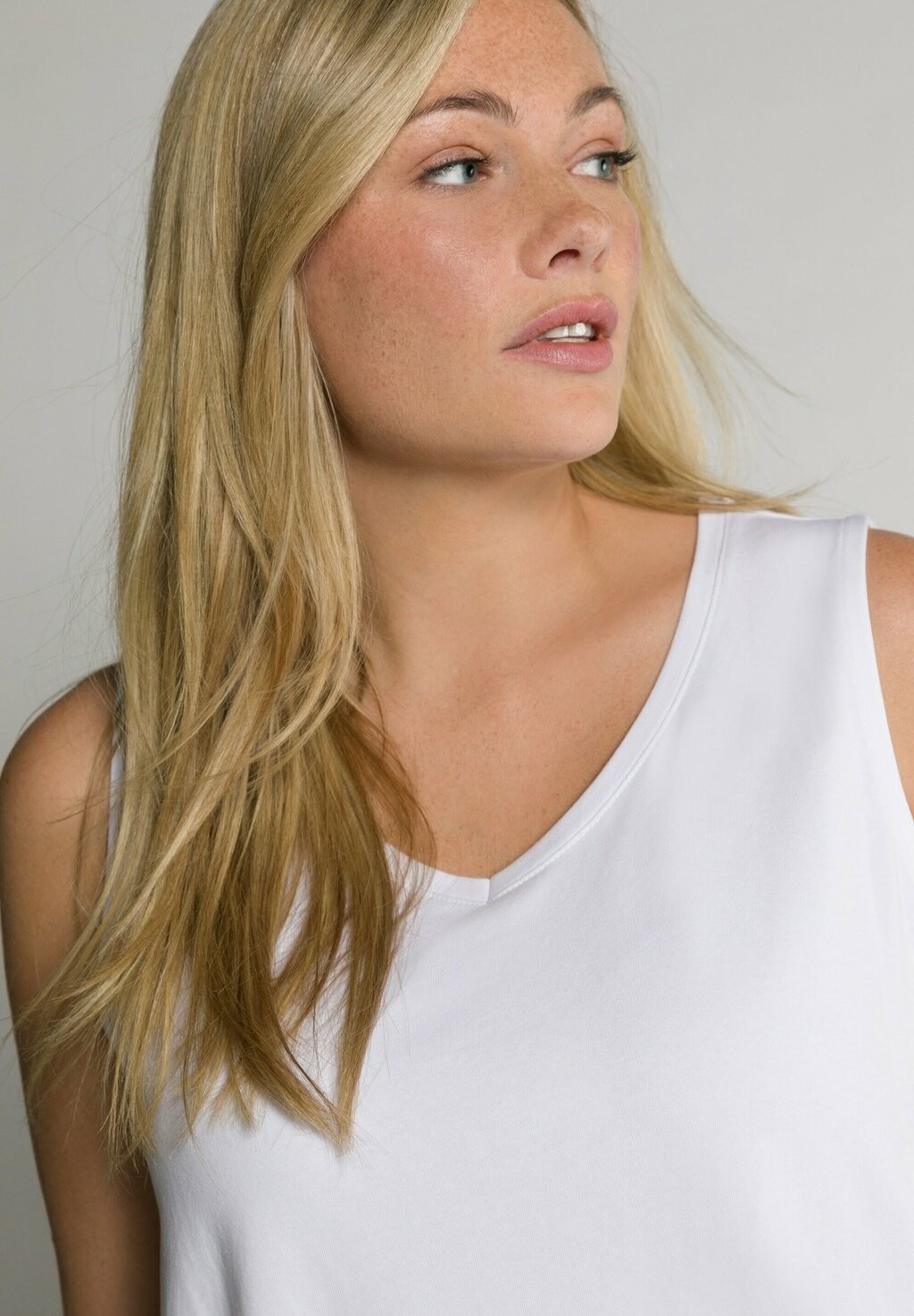 Топ V-AUSSCHNITT ÄRMELLOS Ulla Popken, белый