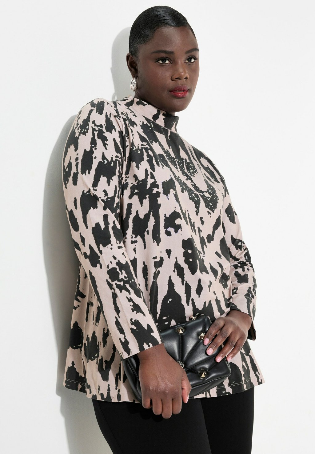 Топ с длинными рукавами ABSTRACT PRINT COLLARED Ulla Popken, черный