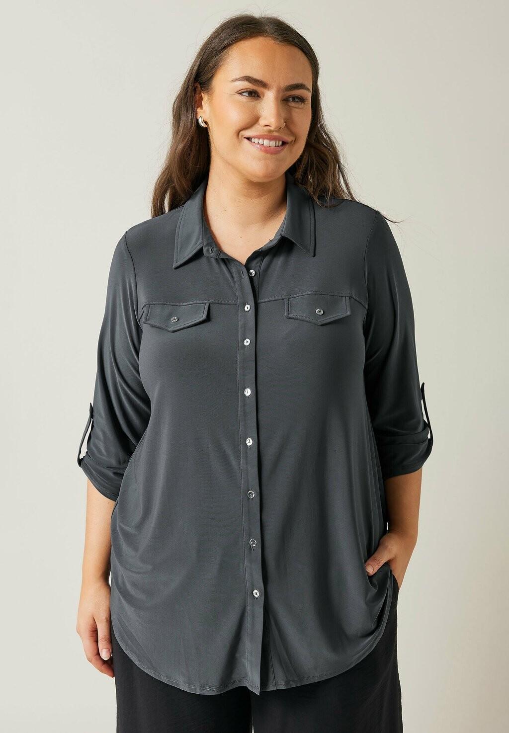 Блузка на пуговицах TAB SLEEVE Evans, темно-серый 8 187₽