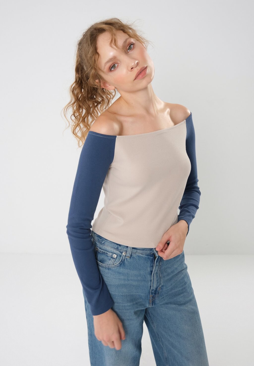 Топ с длинными рукавами BARDOT WITH CONSTRAST SLEEVES Even&Odd, серо-коричневый 2 680₽