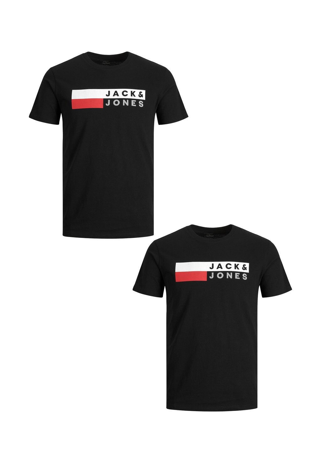 Футболка с принтом LOGO PLUS SIZE RUNDHALS KURZARM 2PACK CORP Jack & Jones, черный