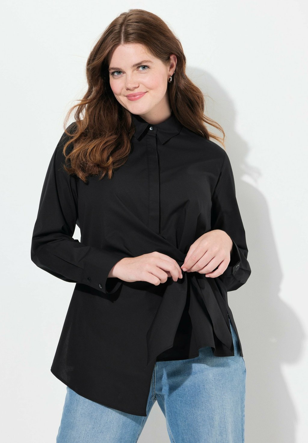 Блузка на пуговицах WRAP FRONT LONG SLEEVE Ulla Popken, черный