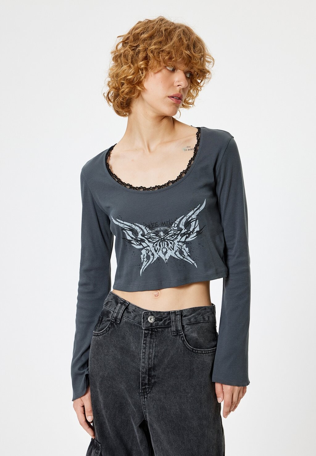 Топ с длинными рукавами CROP LONG SLEEVE Koton, антрацит