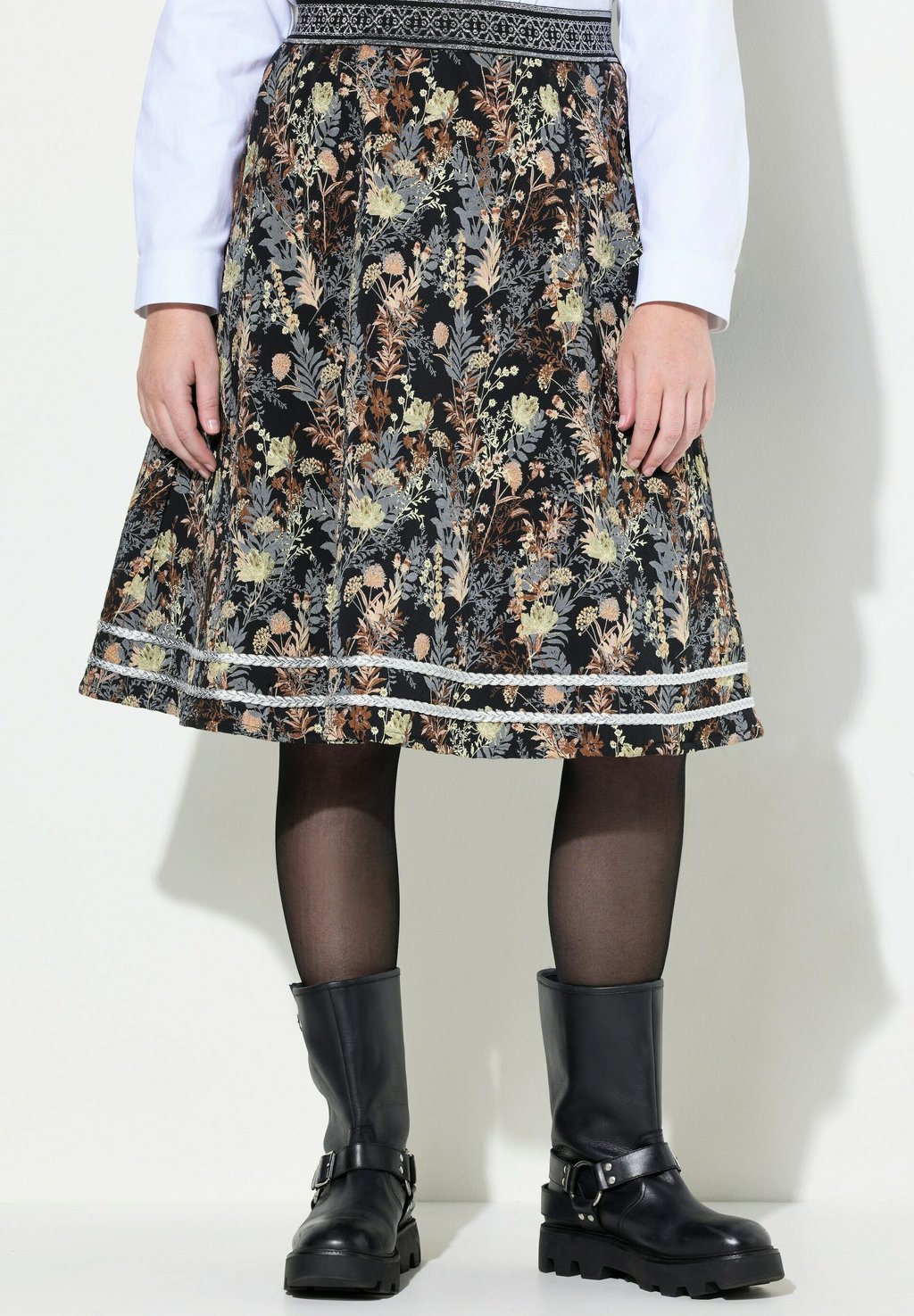 Юбка А-силуэта FLORAL MIDI Ulla Popken, черный