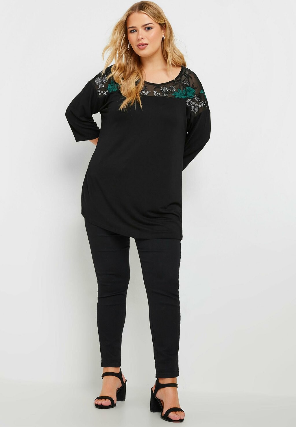 Топ с длинными рукавами EMBELLISHED SWING Yours Clothing, черный 6 684₽