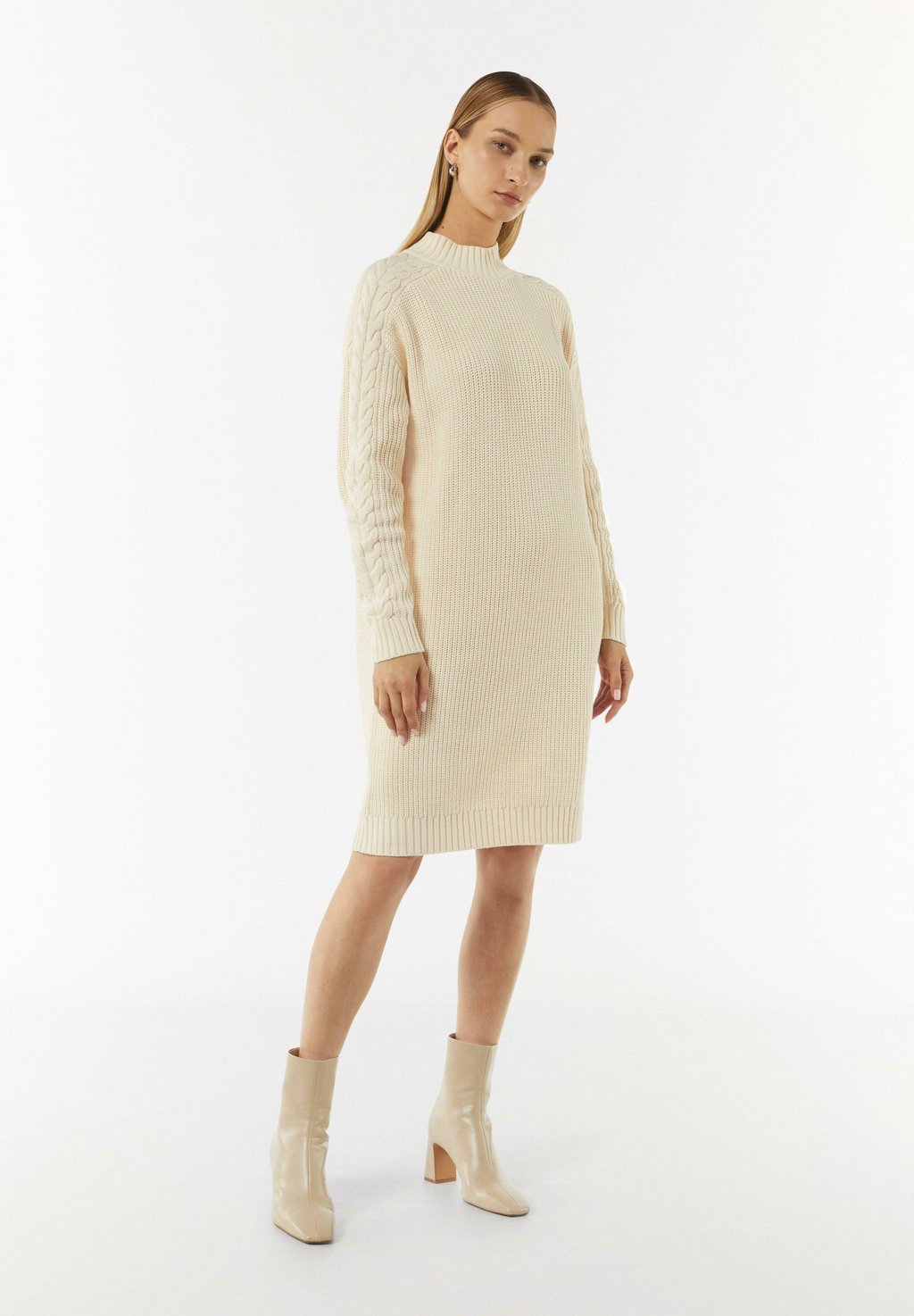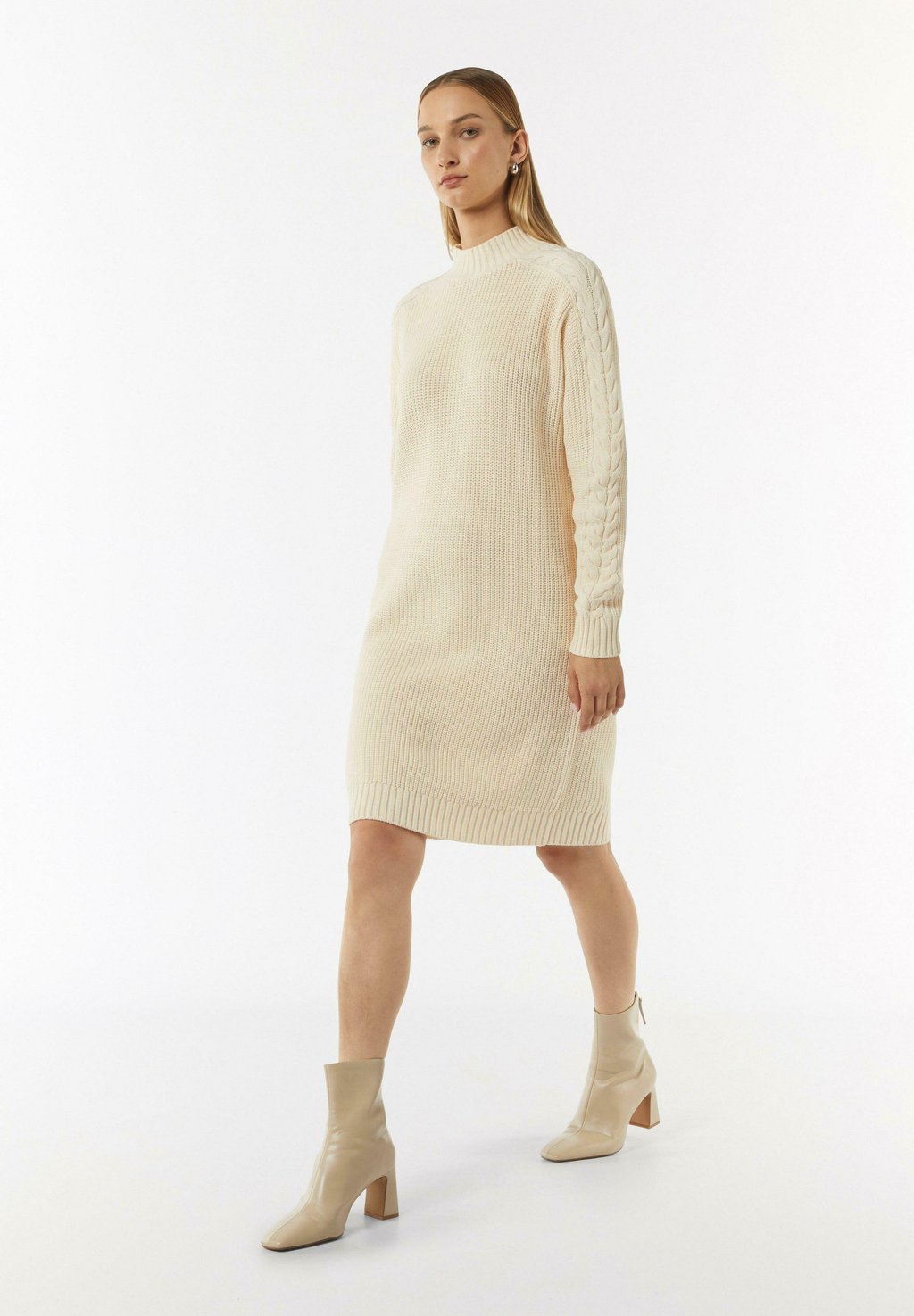 Платье-джемпер MIT ZOPFMUSTER AM ÄRMEL comma casual identity, молочный