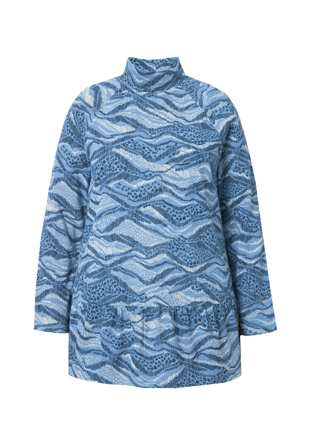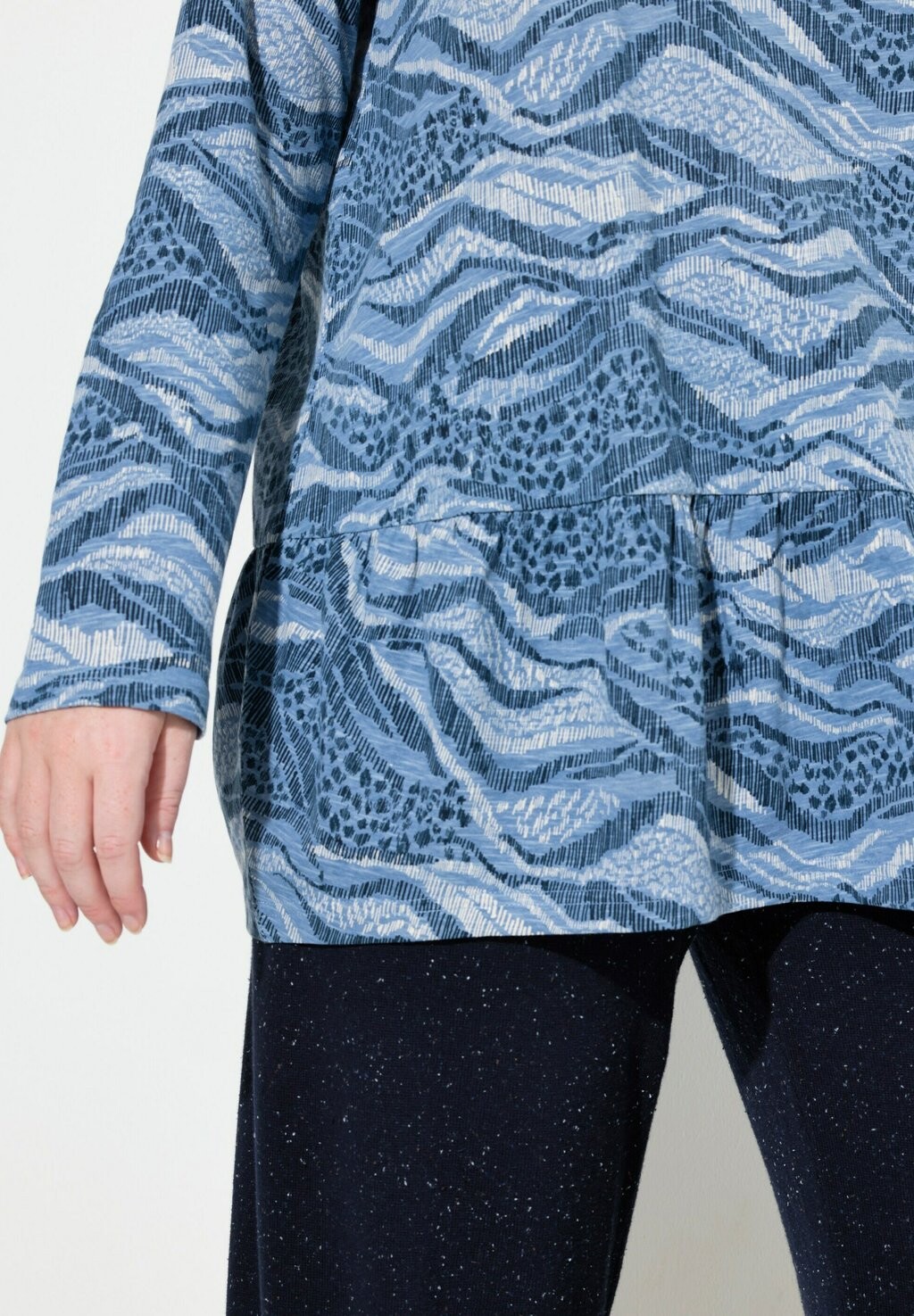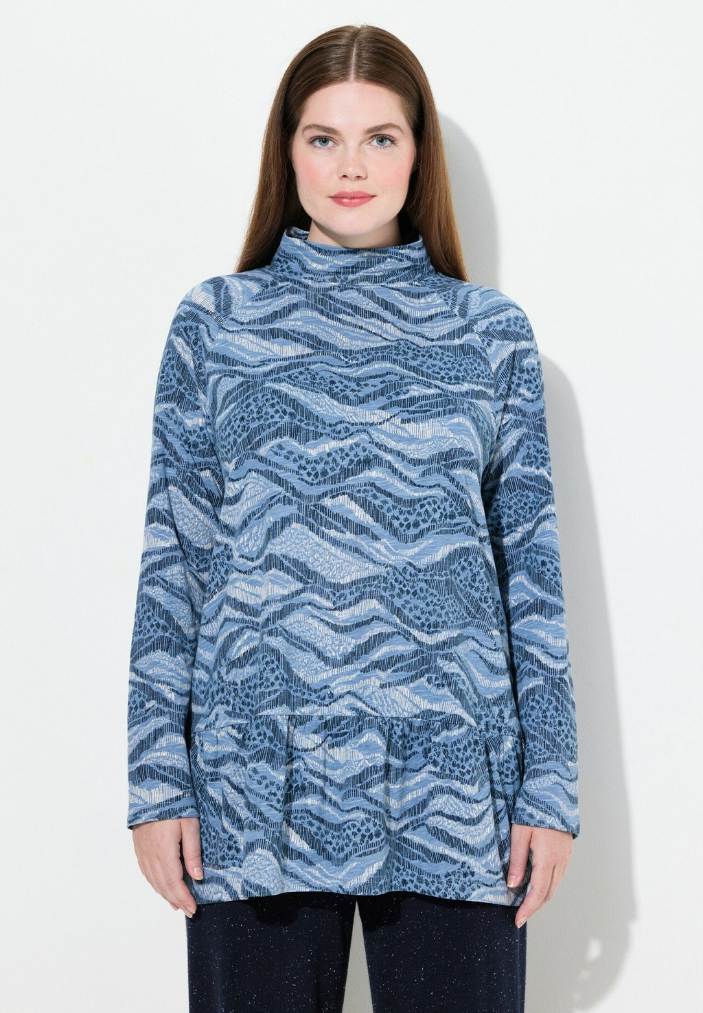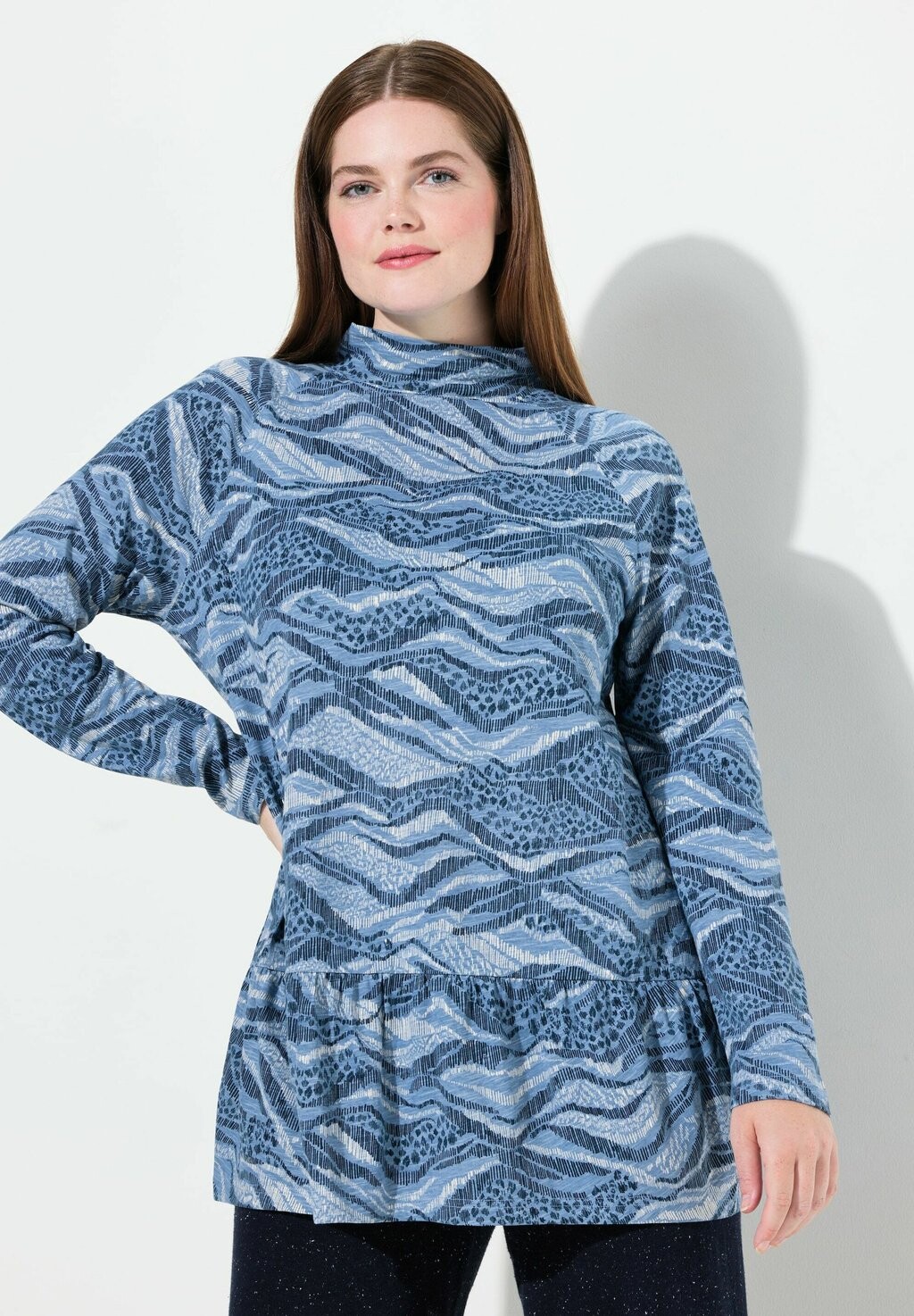 Топ с длинными рукавами LANDSCAPE FLOUNCE HEM Ulla Popken, синий деним