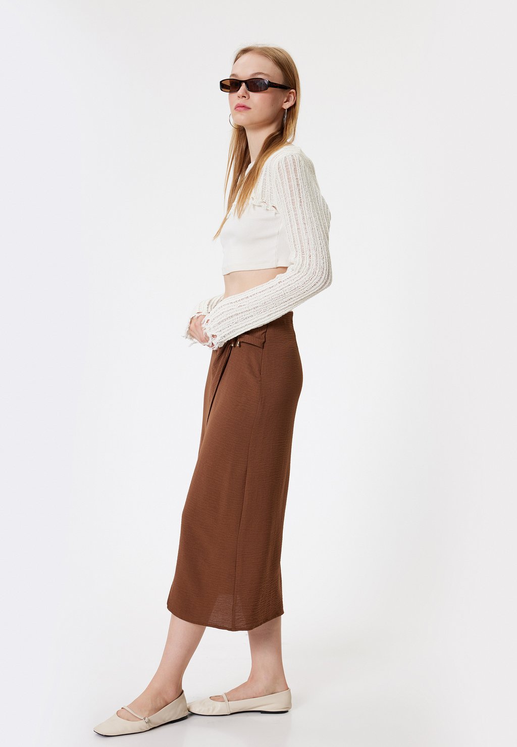 Юбка с запахом MIDI DETAIL Koton, коричневый