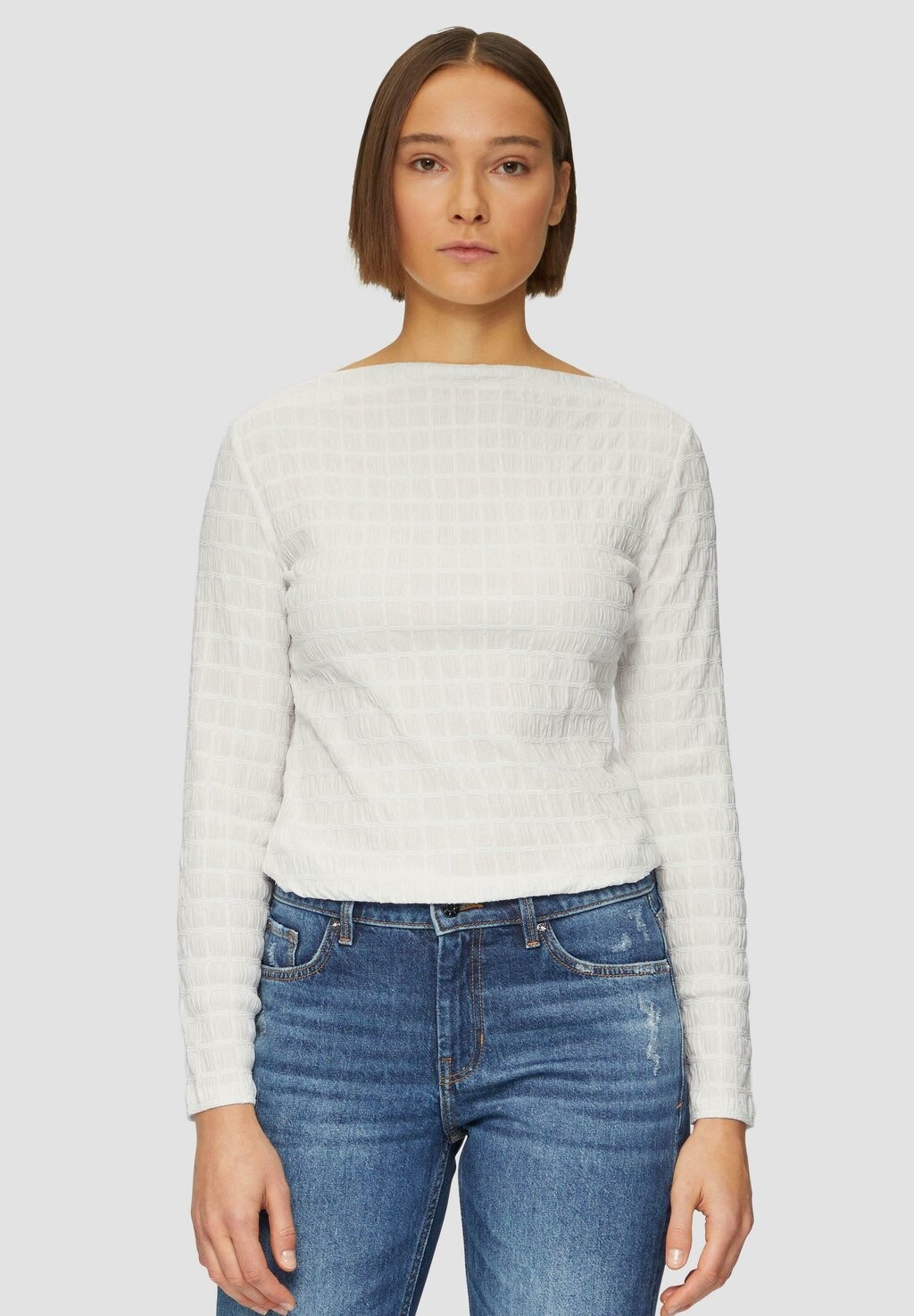 Топ с длинными рукавами MIT STRUKTURMUSTER UND U BOOT AUSSCHNITT s.Oliver, молочный