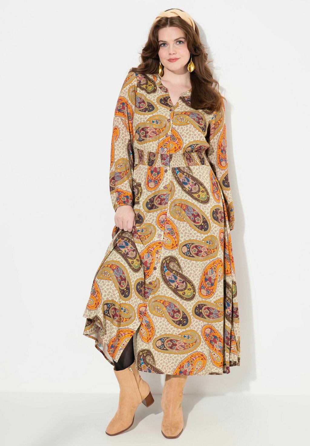 Платье-рубашка RETRO PAISLEY LONG SLEEVE Ulla Popken, золотой