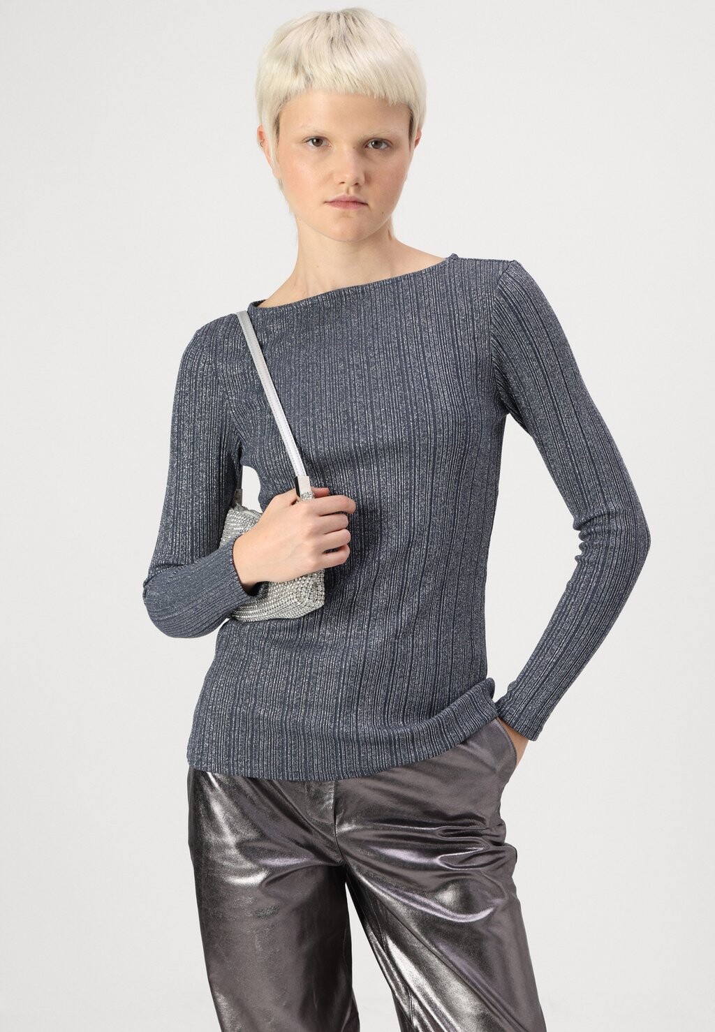 Топ с длинными рукавами PCDALILAH MOCK NECK Pieces, темно-синий 3 640₽