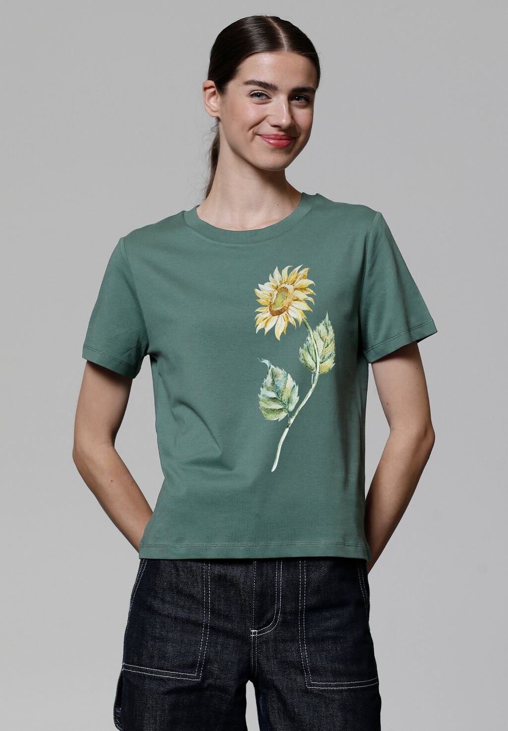 Футболка с принтом SONNENBLUME watapparel, темно-зеленый