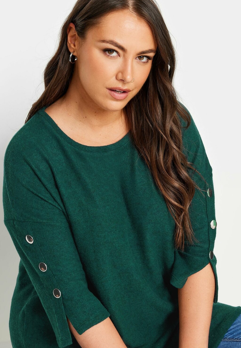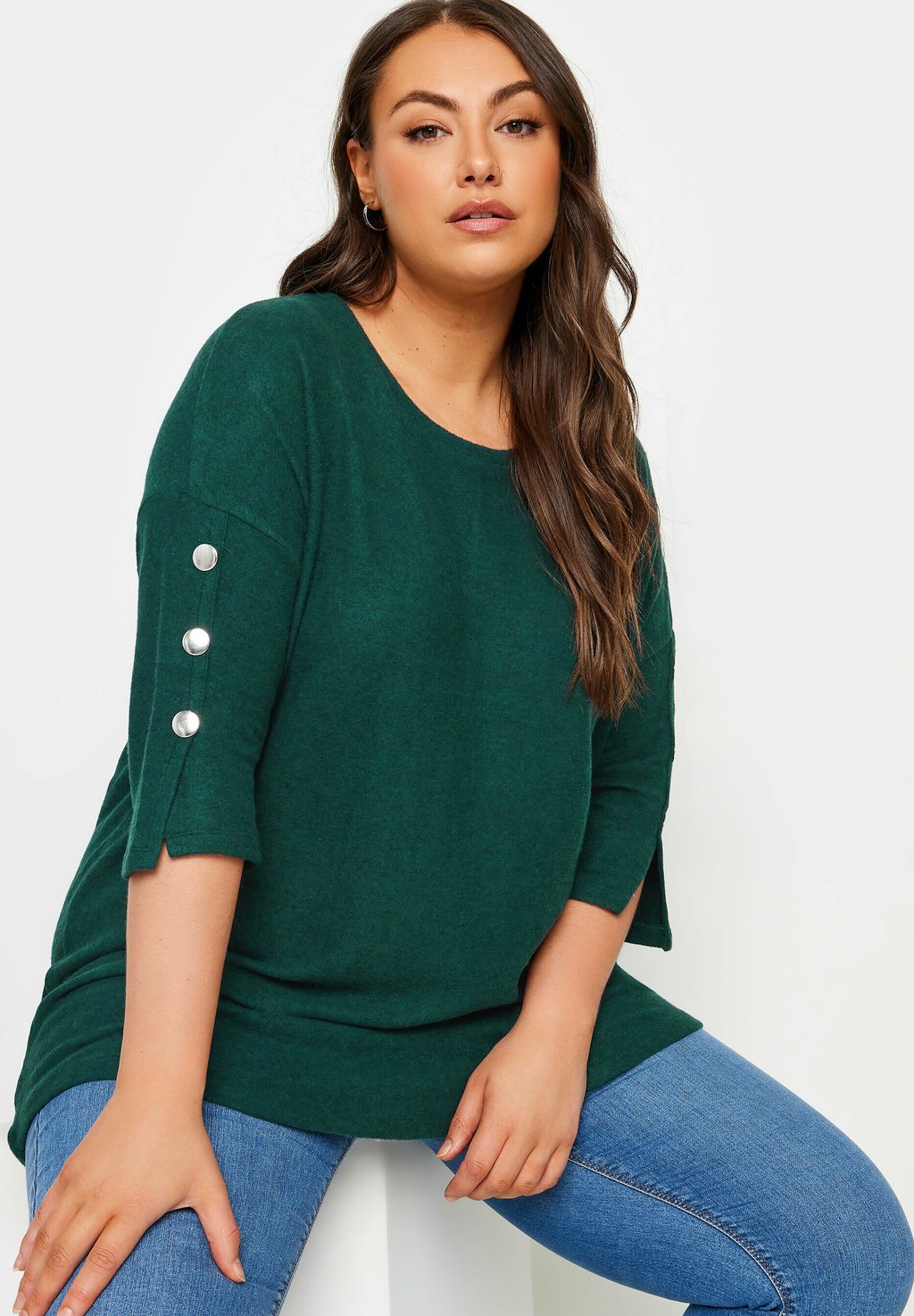 Топ с длинными рукавами SOFT TOUCH BUTTON Yours Clothing, темно-зеленый 6 653₽