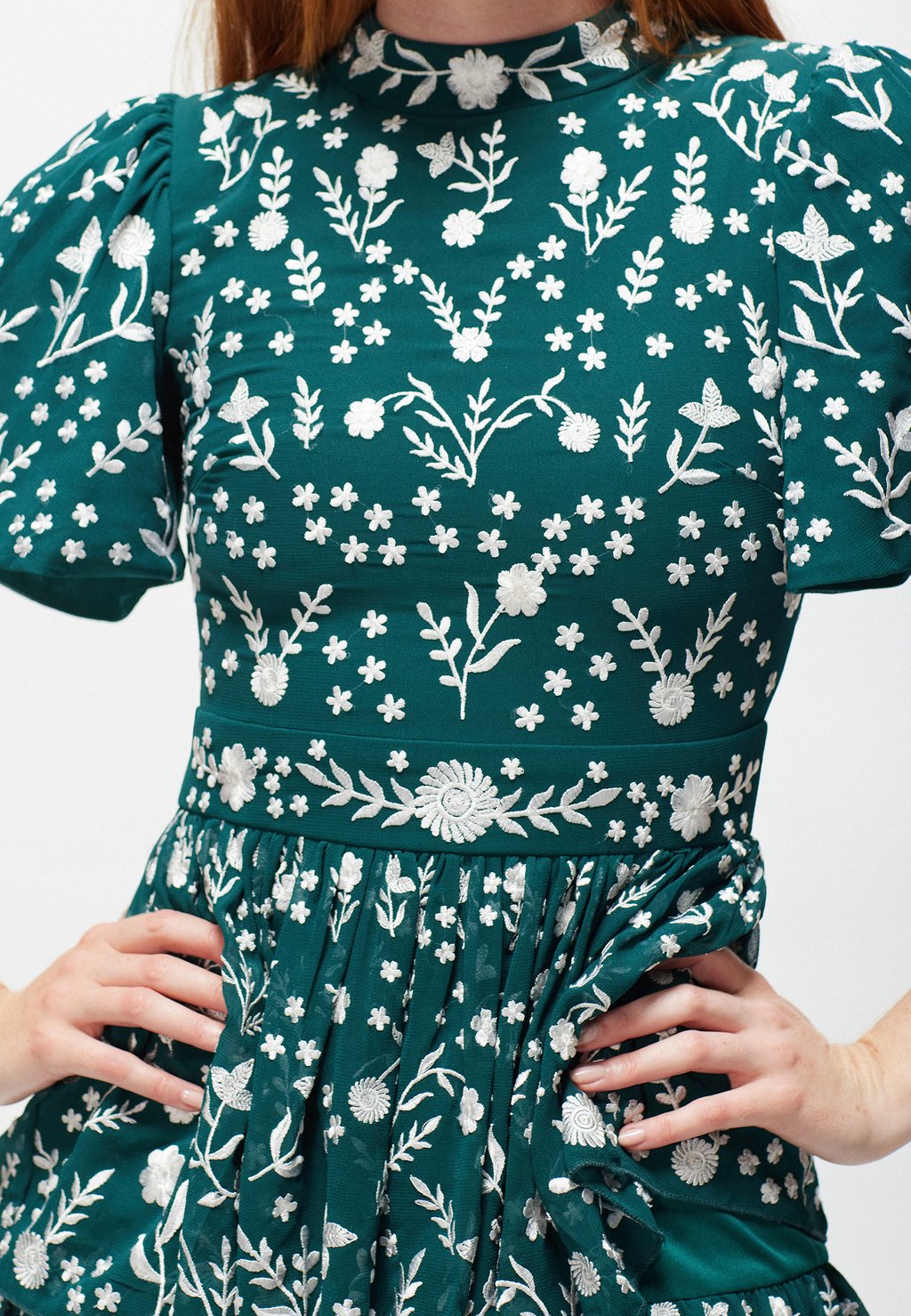 Детали: Вытачки на груди, комбинация, вышивка, кайма.