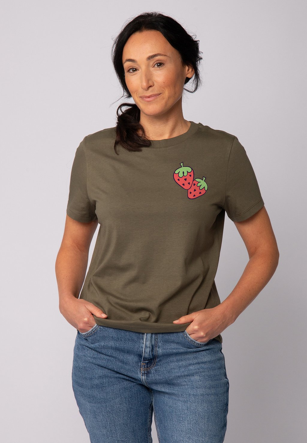 Футболка с принтом STRAWBERRY watapparel, хаки