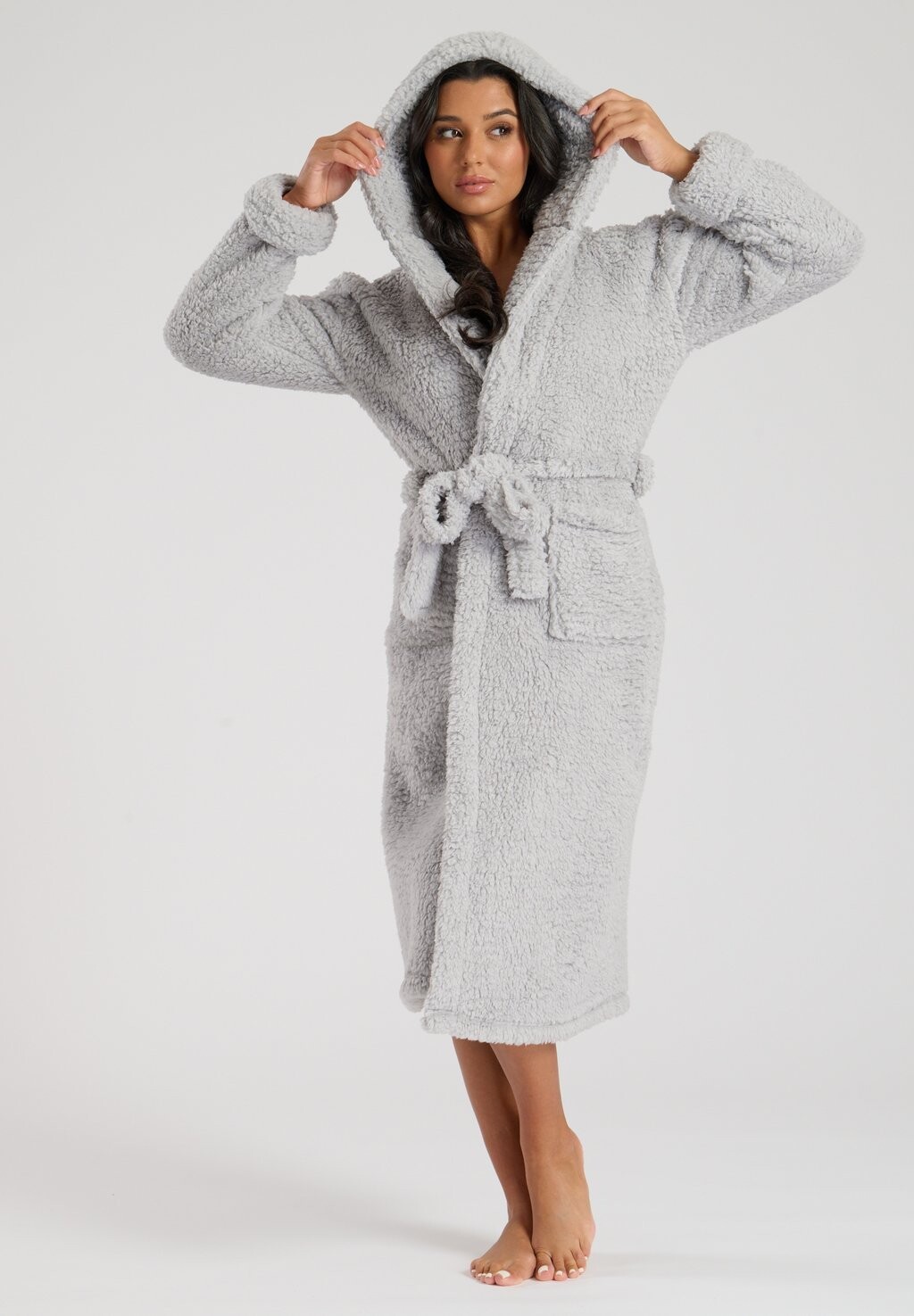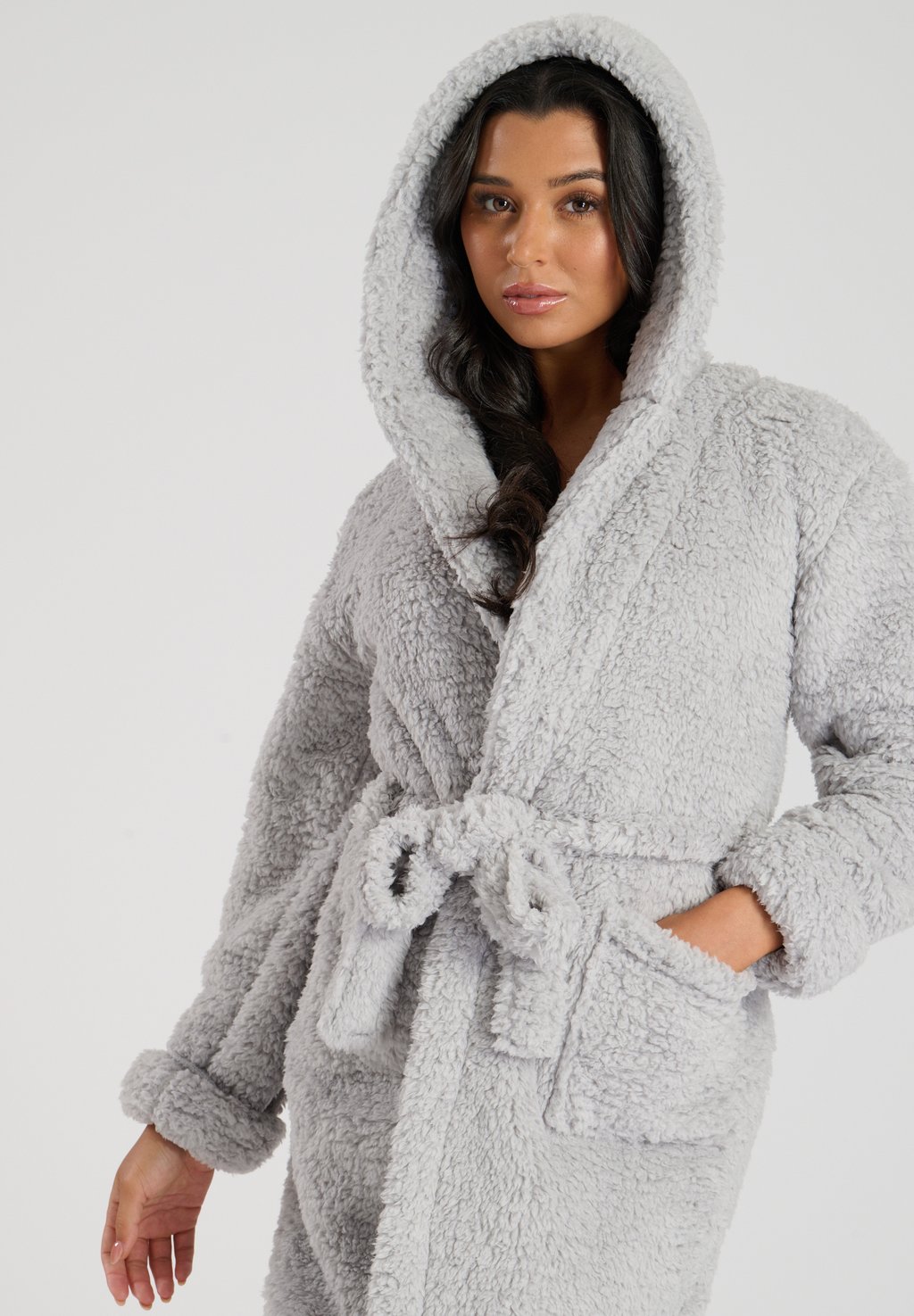 Халат CHUNKY SHERPA HOODED MIDAXI Loungeable, серебристый 6 526₽