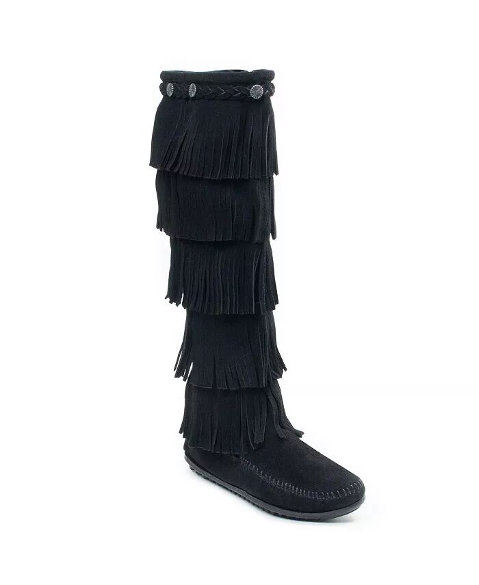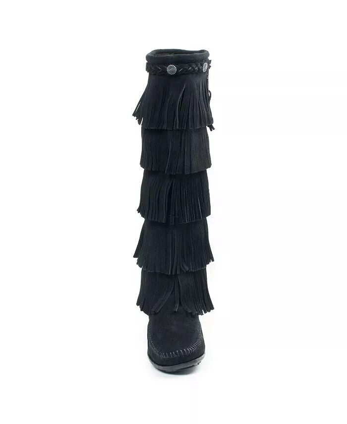 Женские замшевые 5-слойные ботинки с бахромой Minnetonka, черный